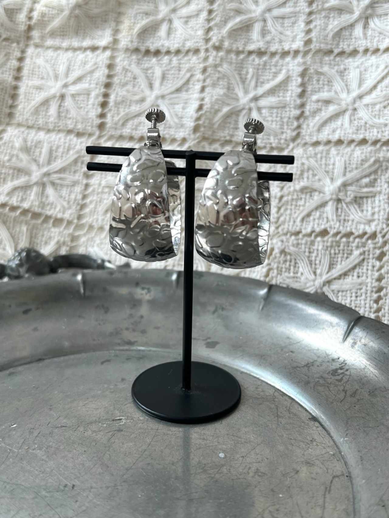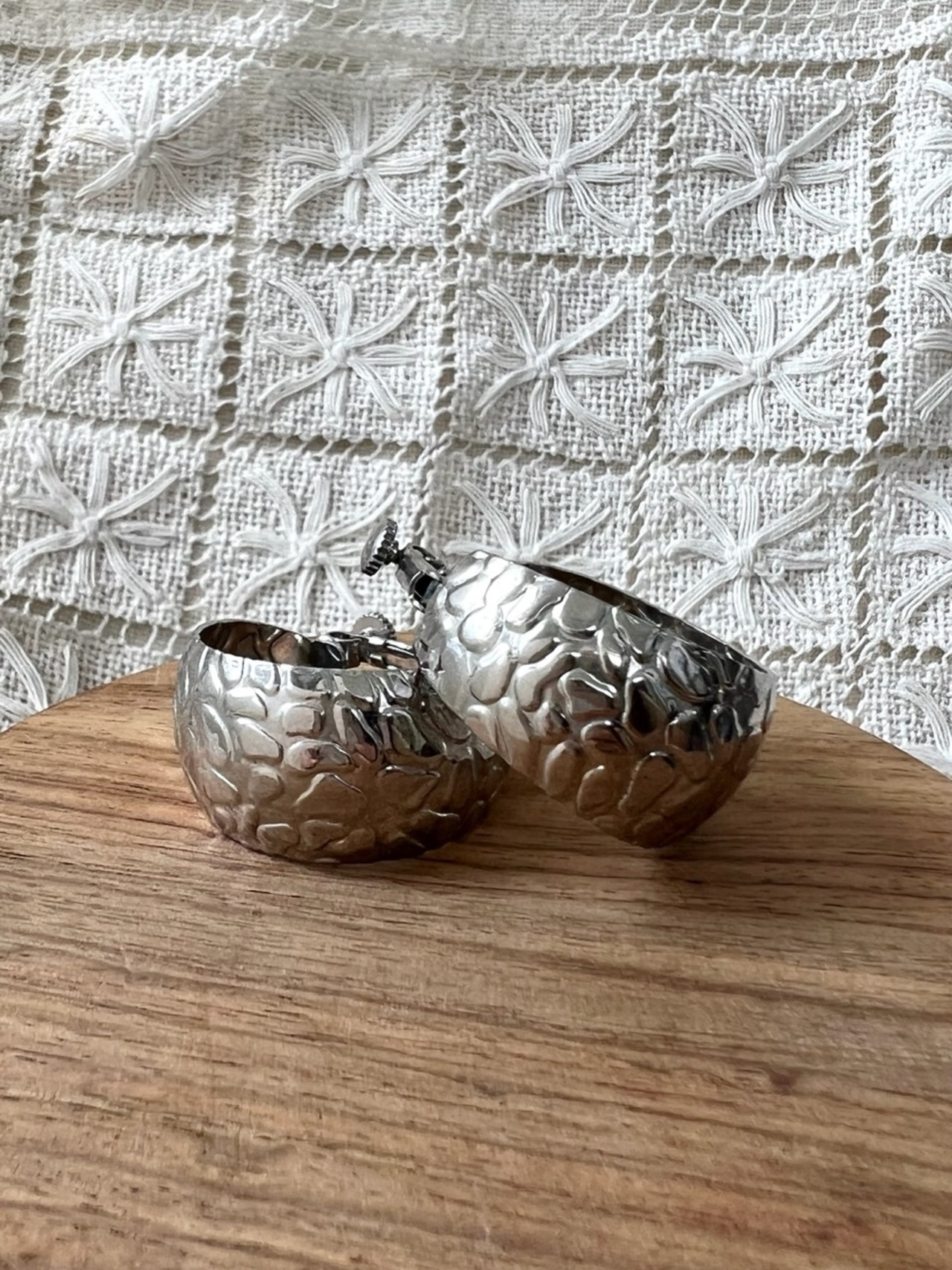 太めのフープが存在感のあるイヤリングです。
