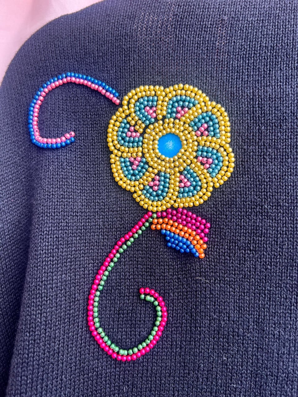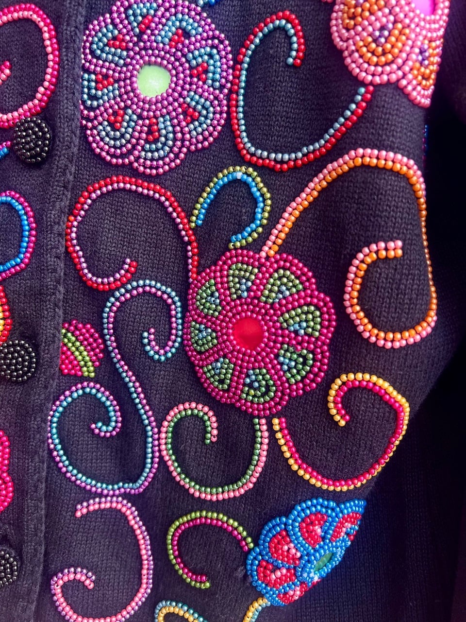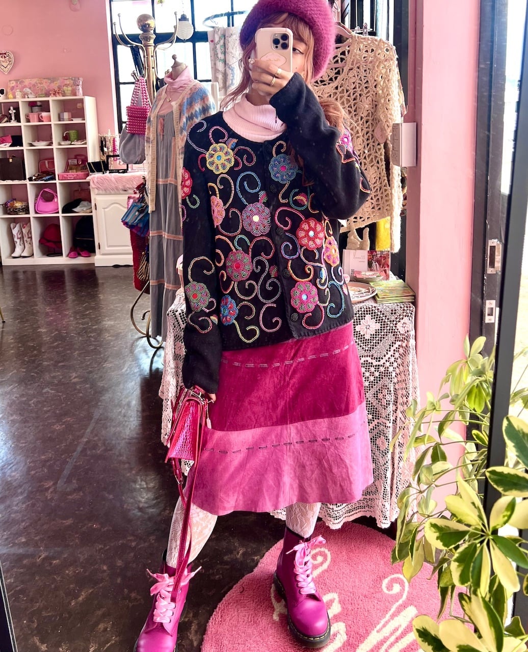 カラフルなお花模様がビーズでふんだんに施されています。