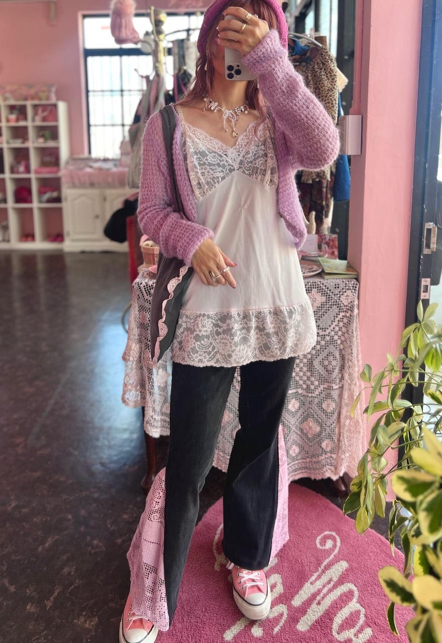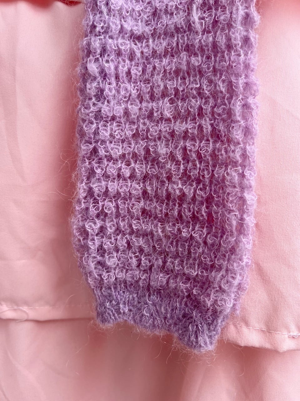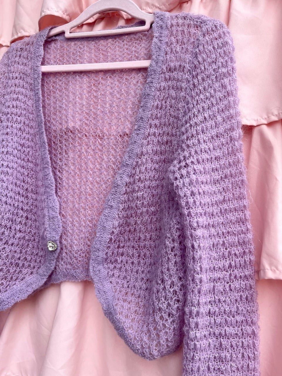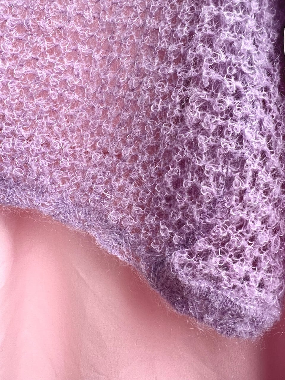 モヘア素材なので暖かく、キャミソールに合わせるのもオススメです。
