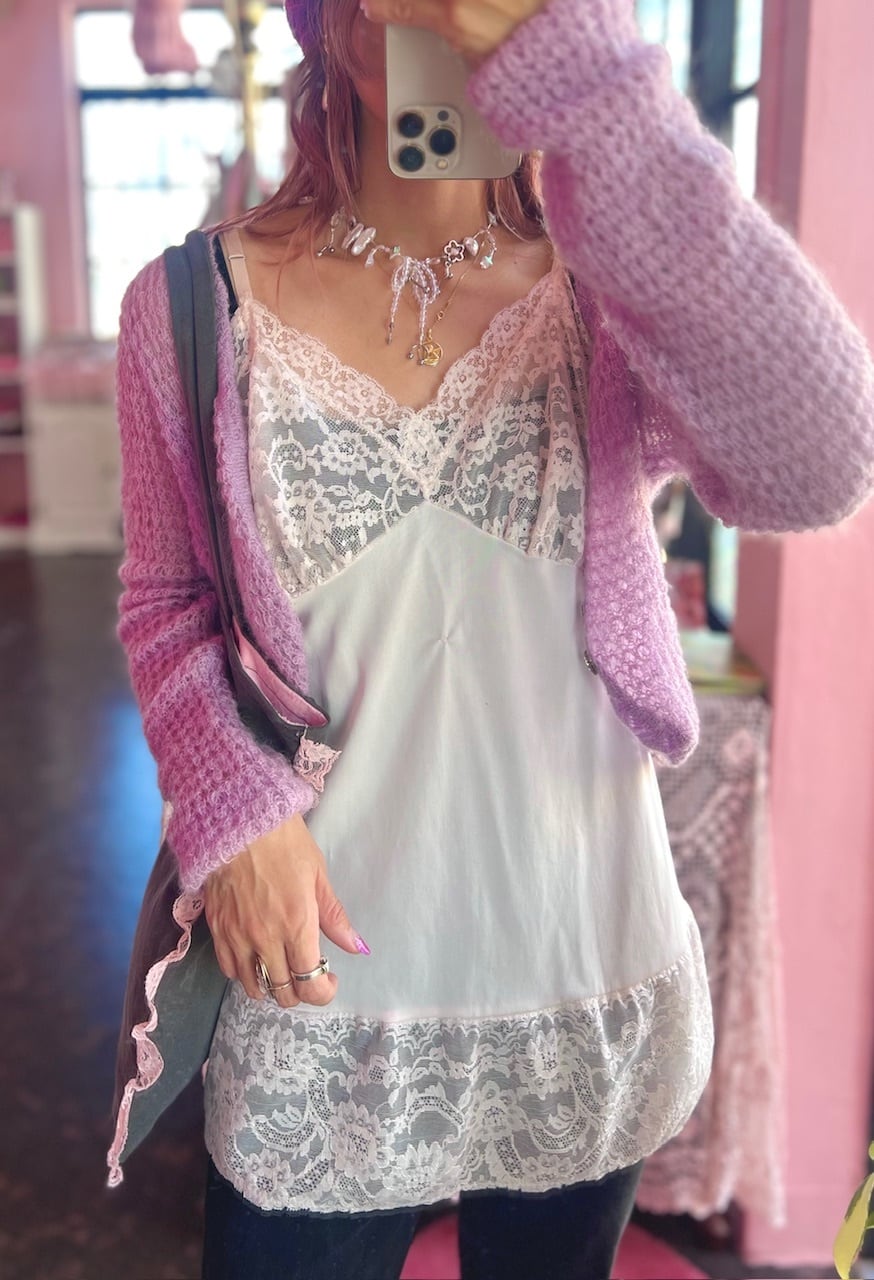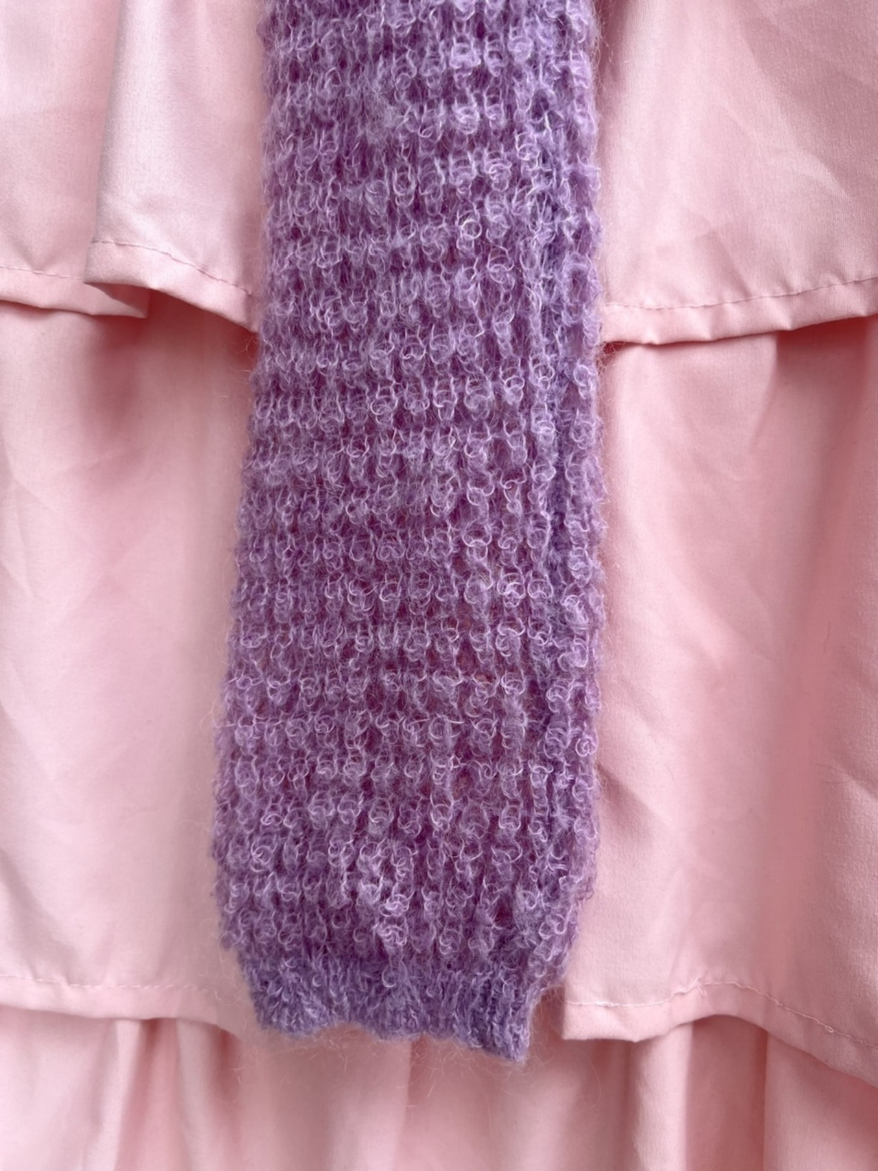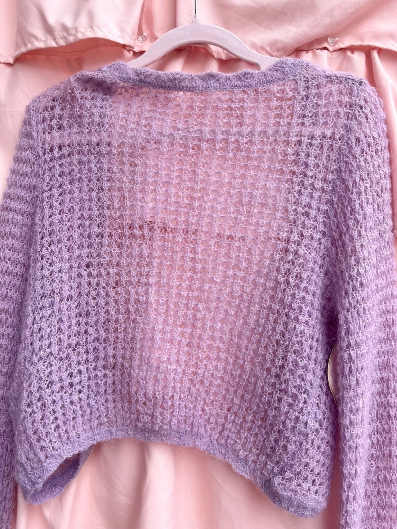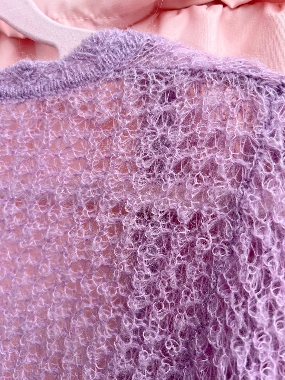モヘア素材なので暖かく、キャミソールに合わせるのもオススメです。