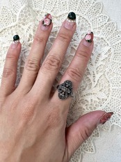 光に当たるとキラキラと輝くマーカサイト×silverリング。縦長のモチーフが指を綺麗に見せてくれます。マーカサイトには「持ち主を前向きにし、自信をもたせてくれる」効果があります。