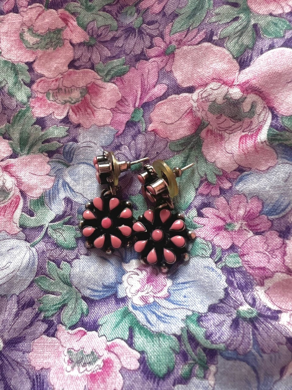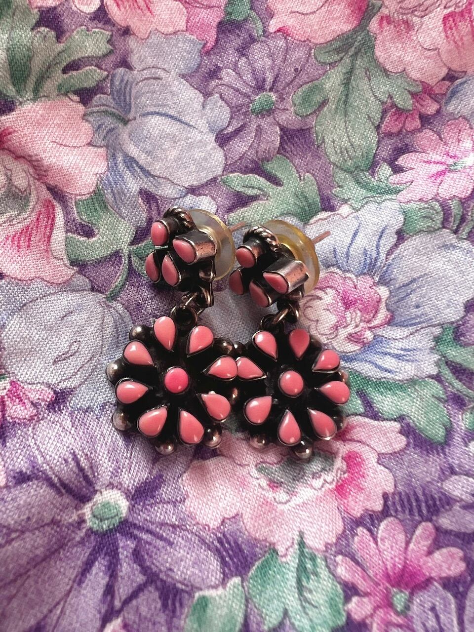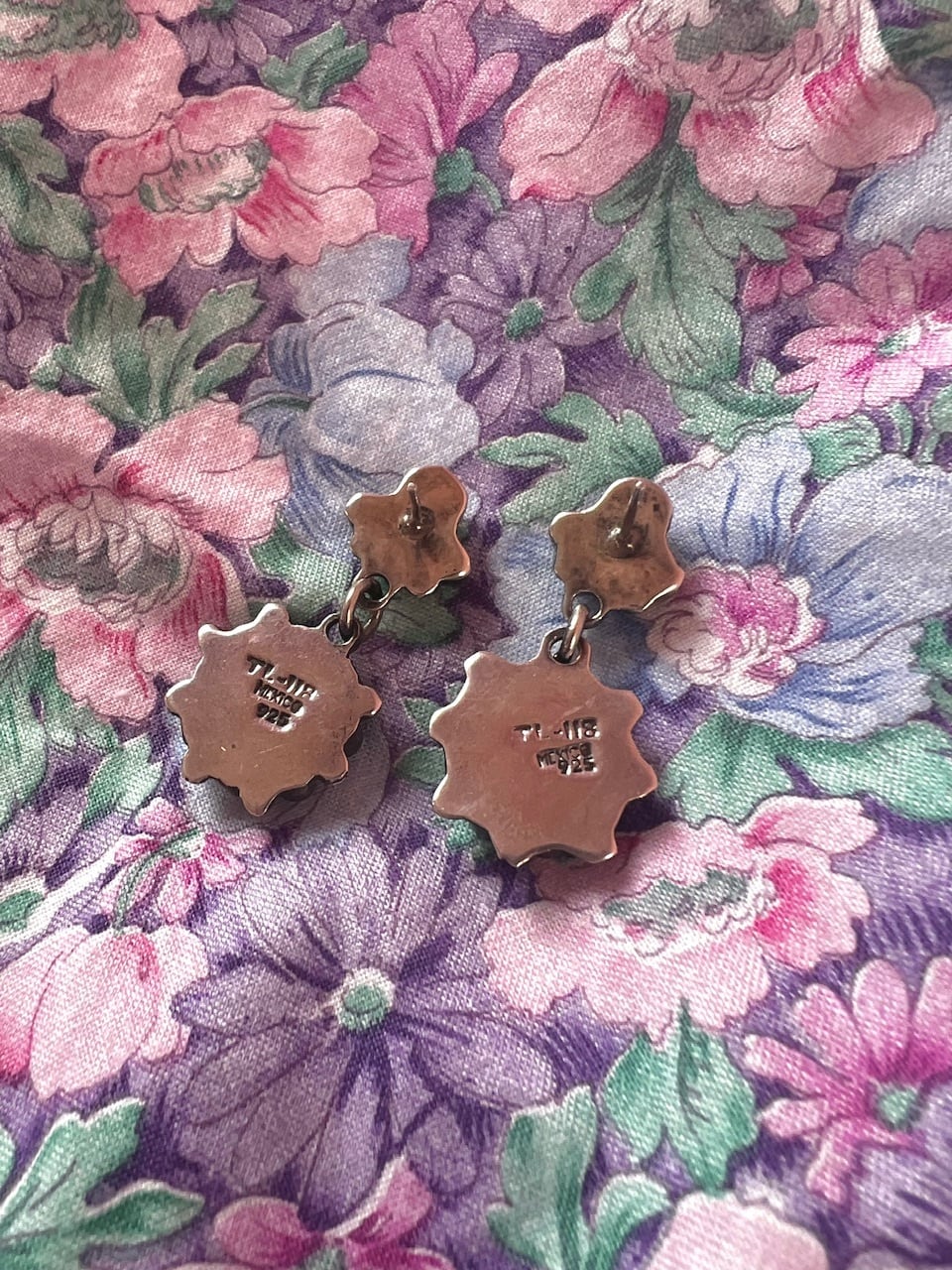 ピンクコーラルが入った925メキシコ製ヴィンテージピアスです。