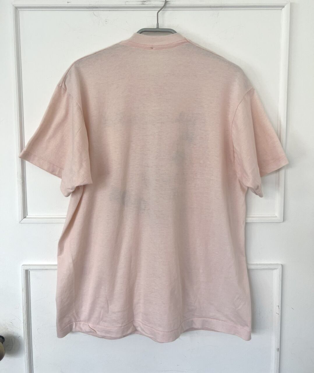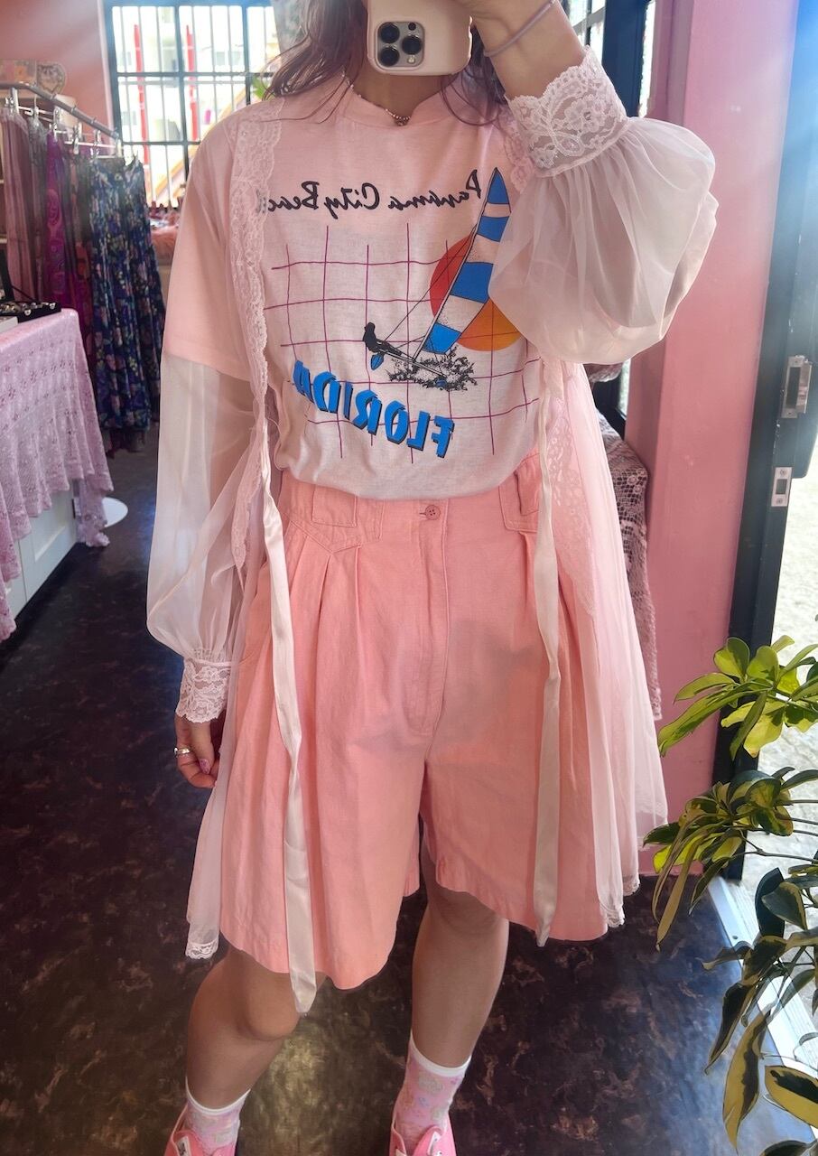 ヨットの絵柄が可愛い薄ピンク色のTシャツ。