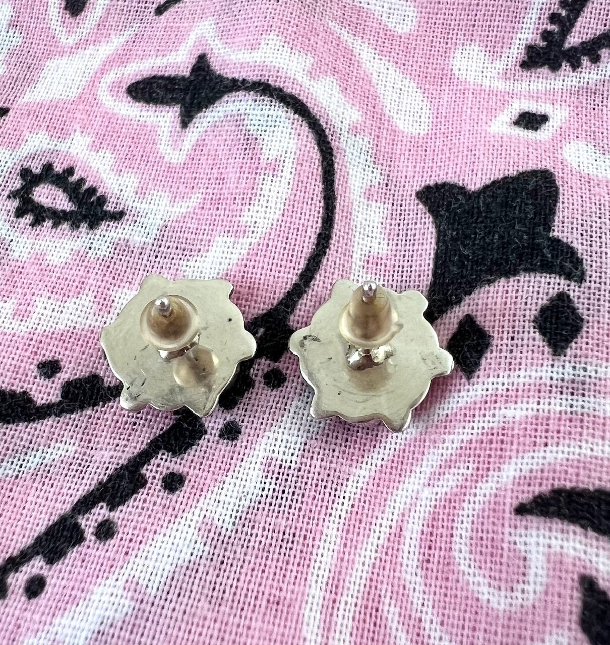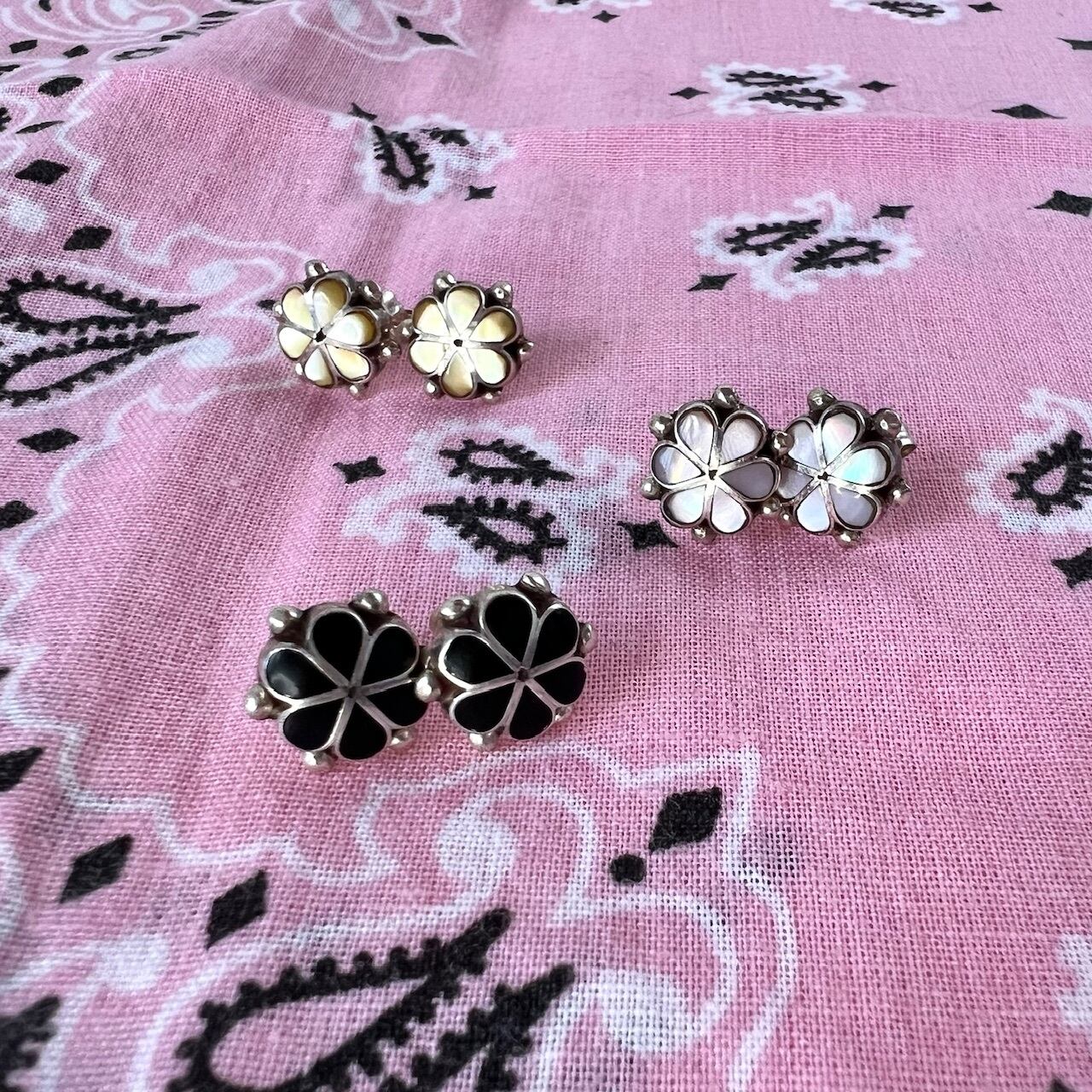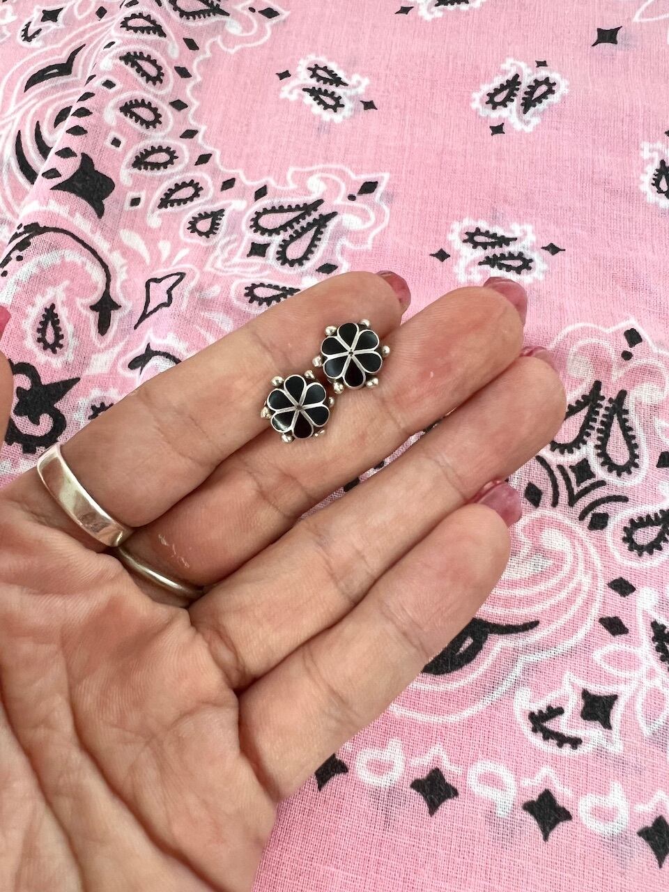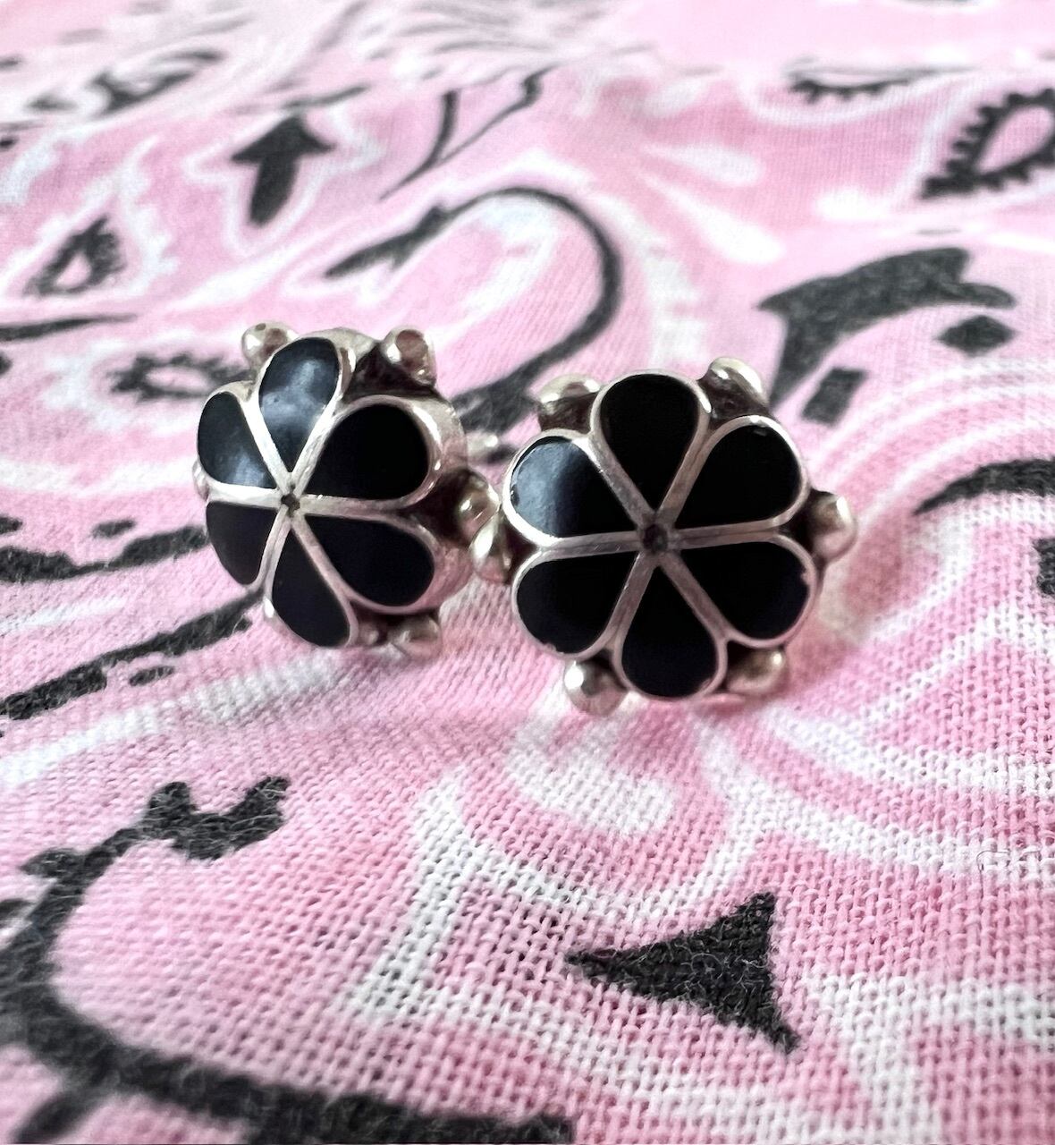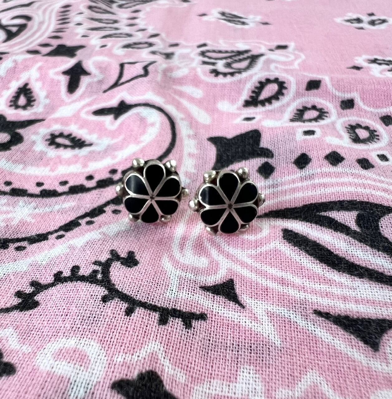 オニキス×スターリングシルバーのズニ族お花模様ピアスです。