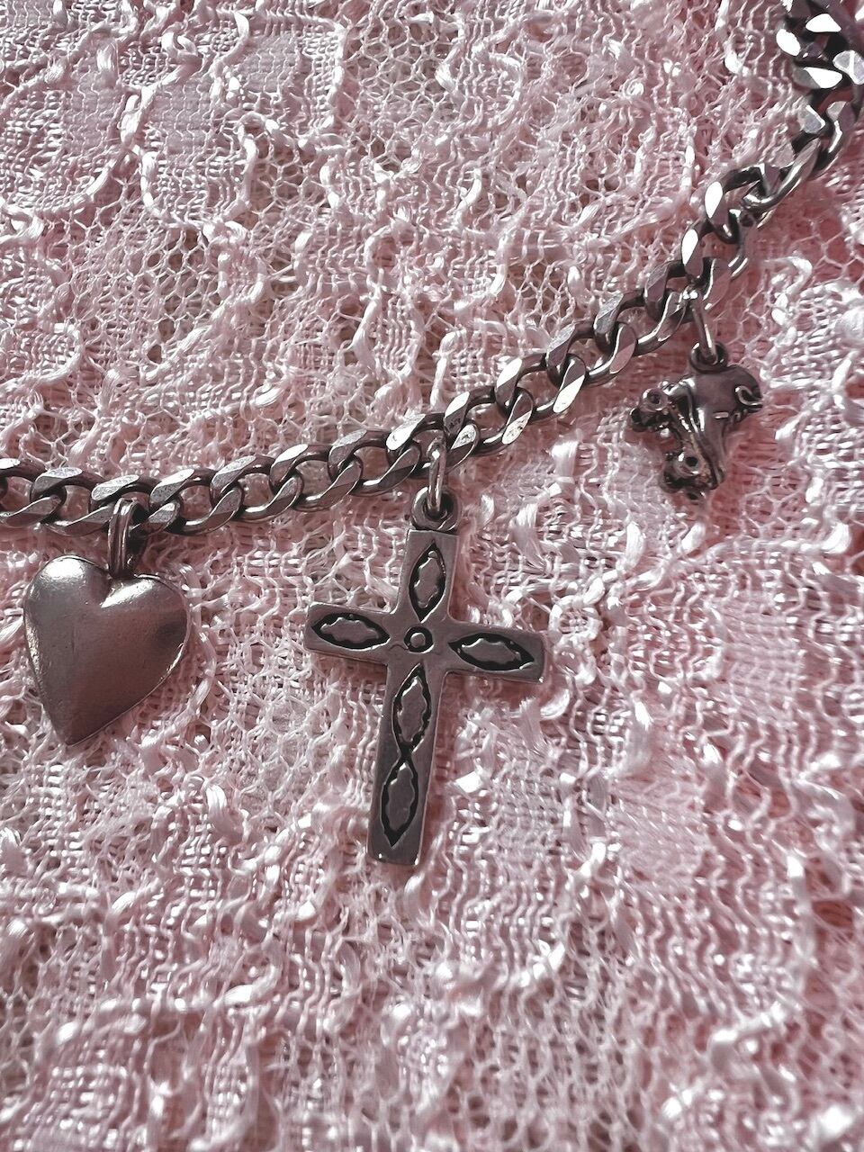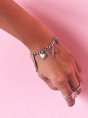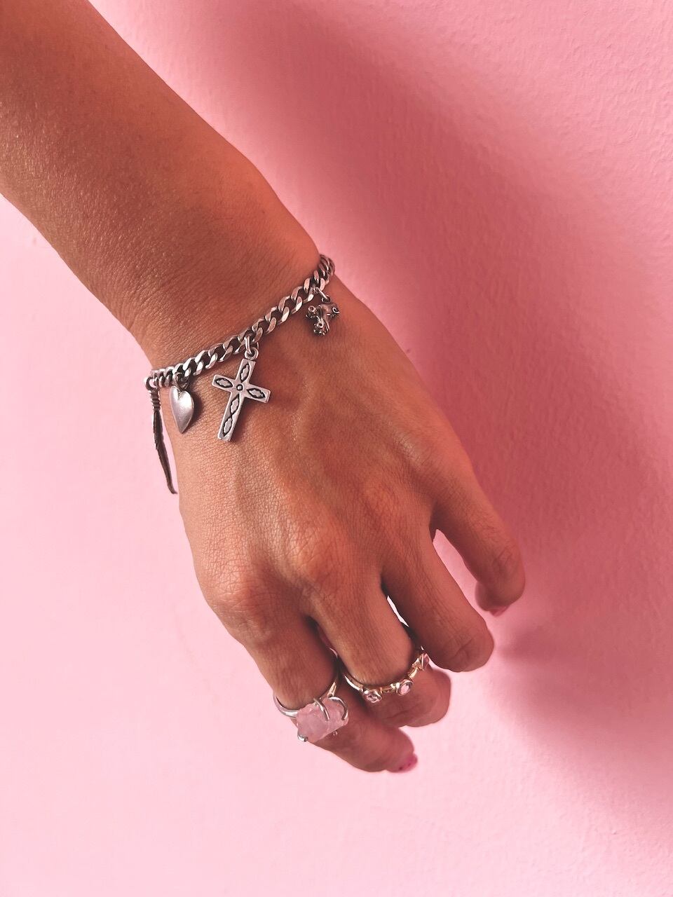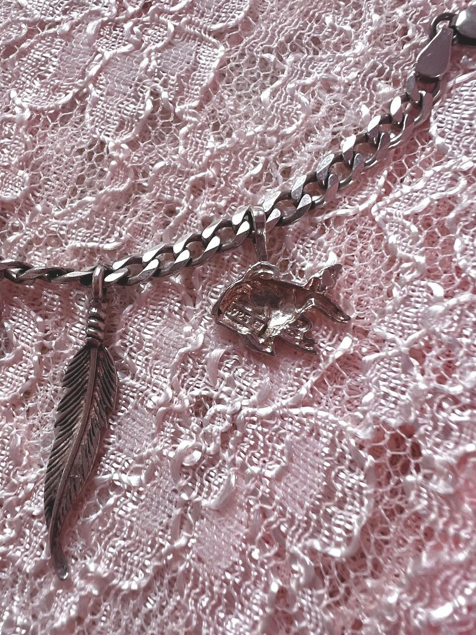 Sterling silverのチェーンに、同じSterling silverのチャームが並んだブレスレット。