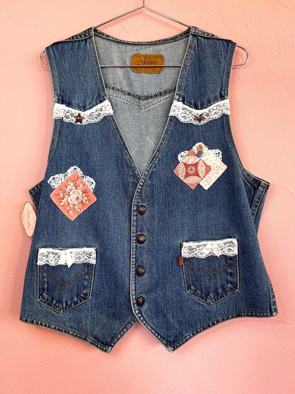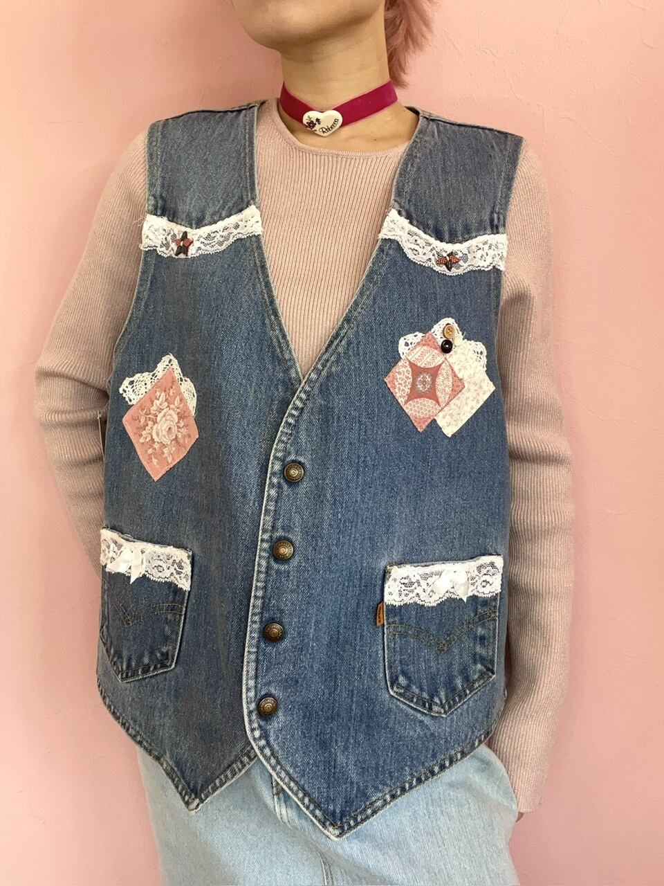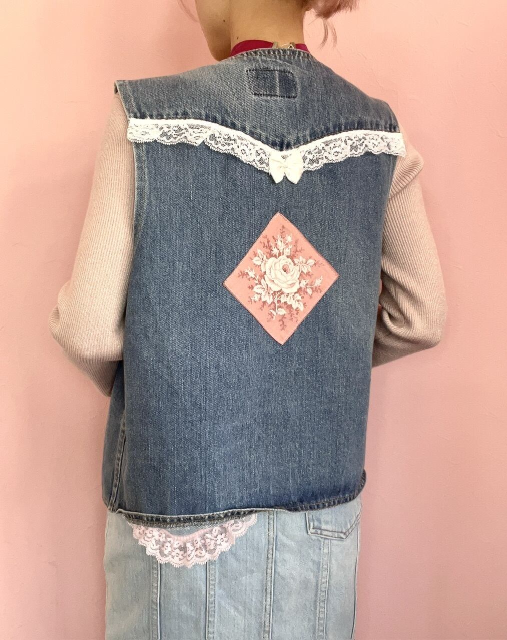 レースやリボン、はぎれの組み合わせが素敵で世界観が可愛いらしいベストです。