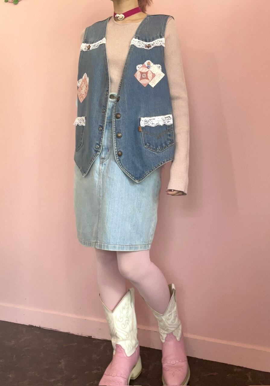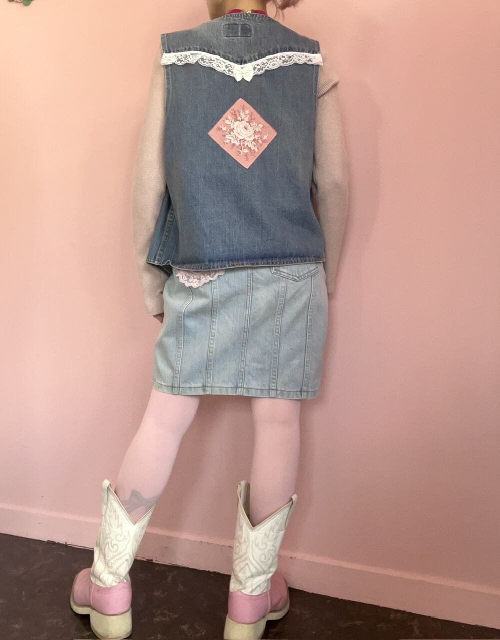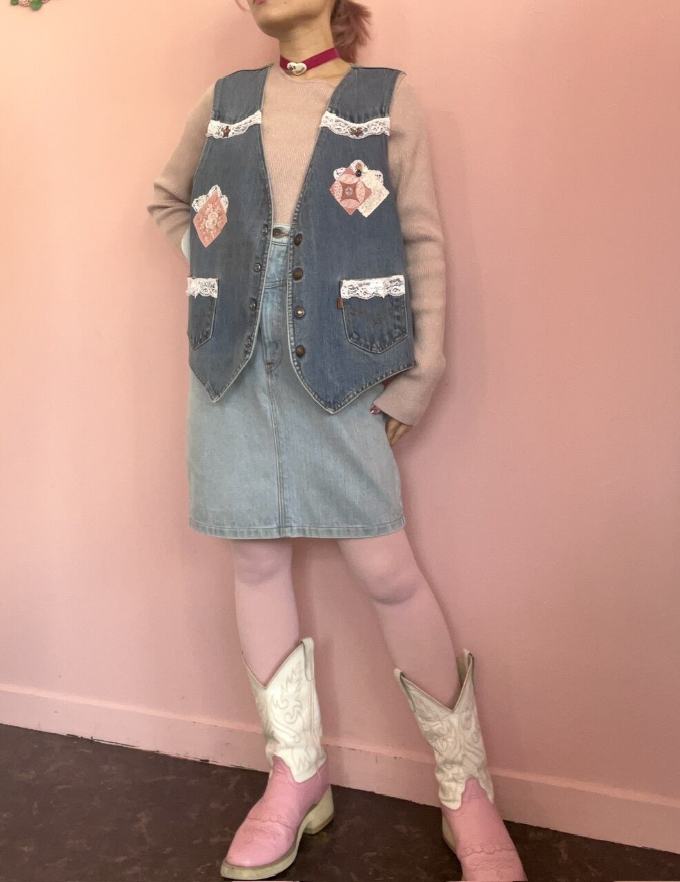 レースやリボン、はぎれの組み合わせが素敵で世界観が可愛いらしいベストです。