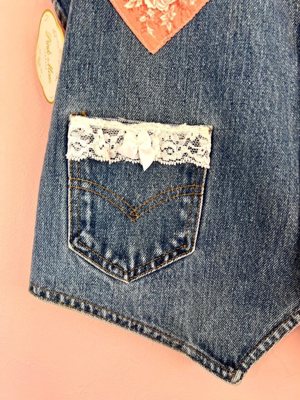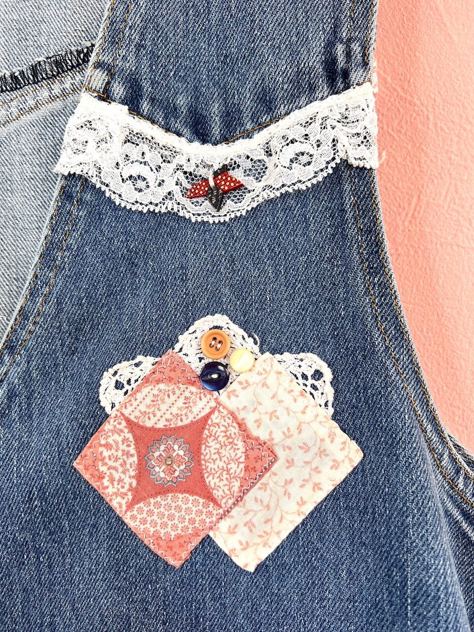 ピンクのフィードサック生地がレースと組み合わさっていて素敵なデザインです♡