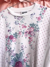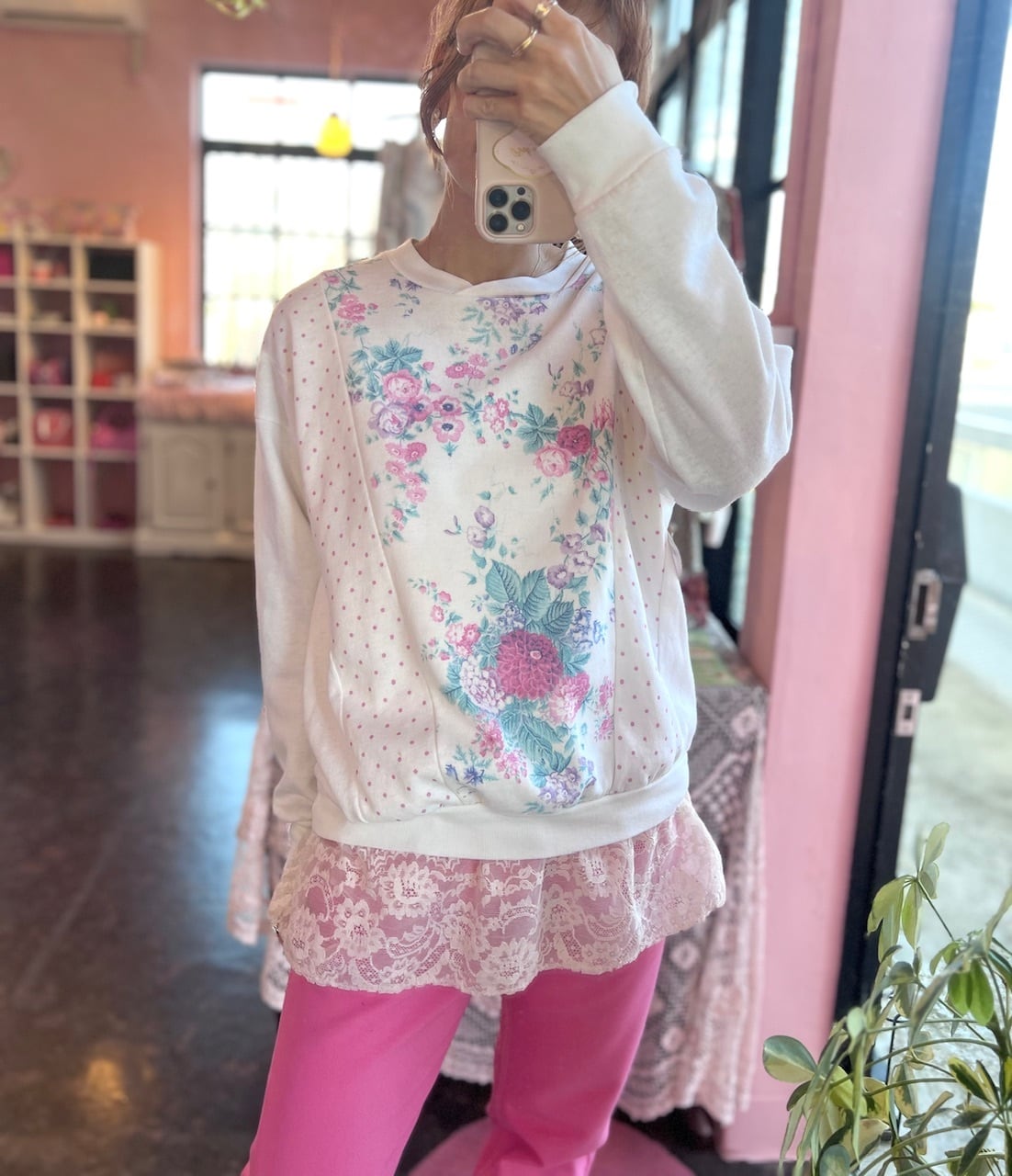 花柄×ドットが可愛いらしいホワイトスウェット。