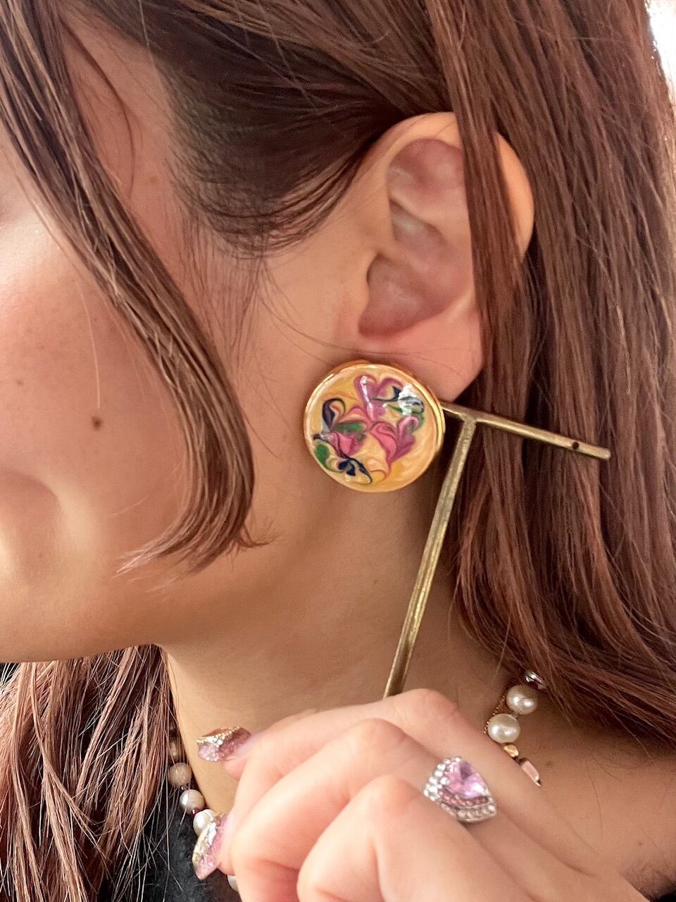 エナメル素材でアートされたモチーフが素敵なVintageピアス。