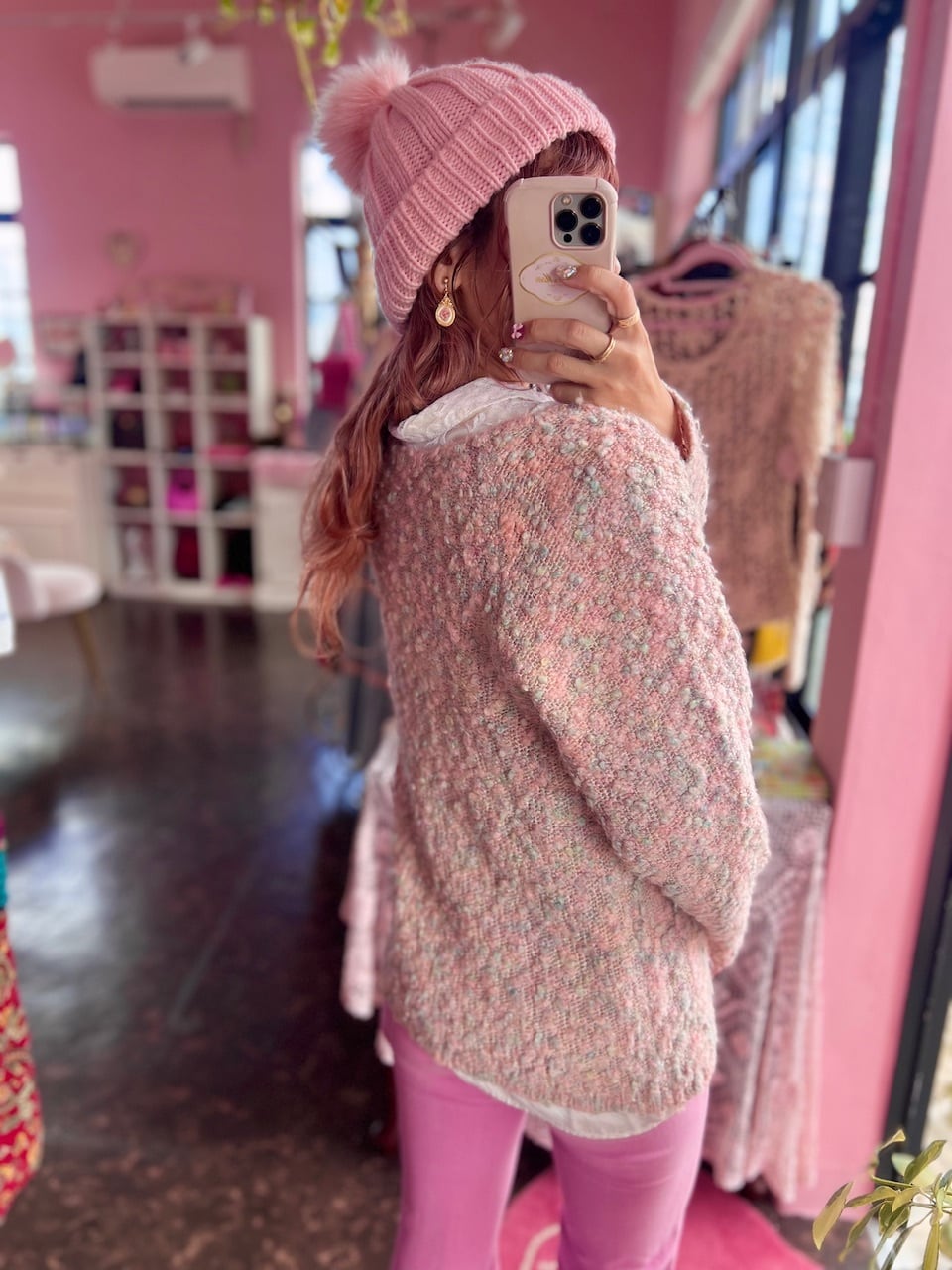 ぽんぽんがお菓子の様で可愛くて暖かいニット。