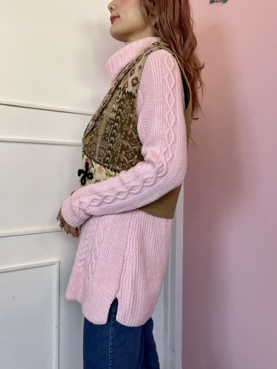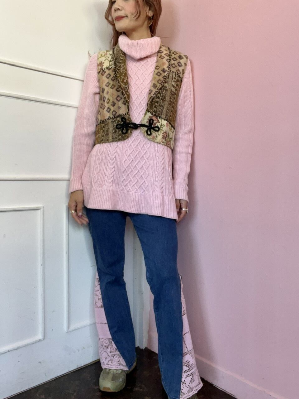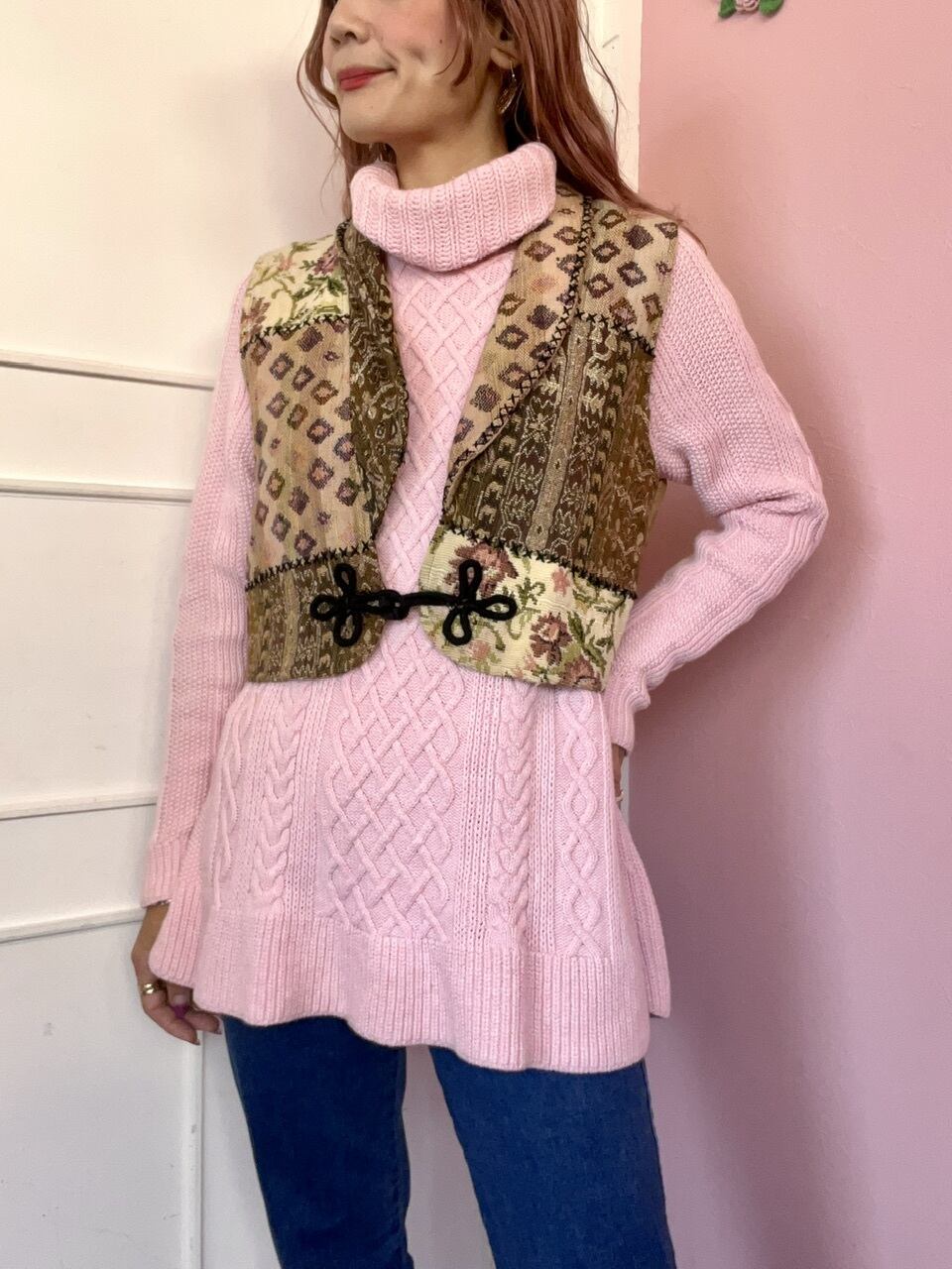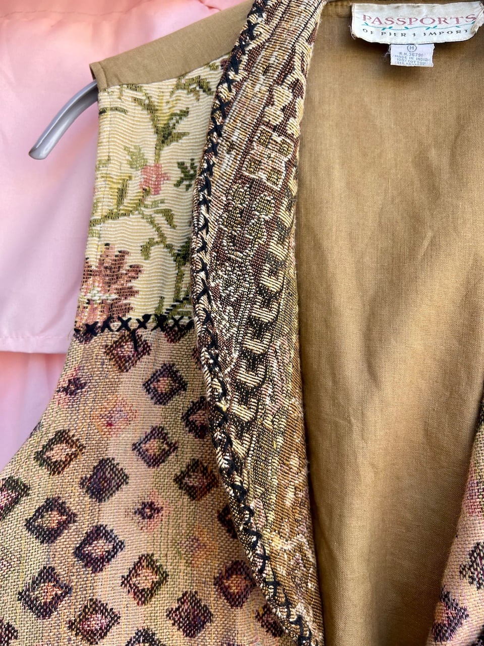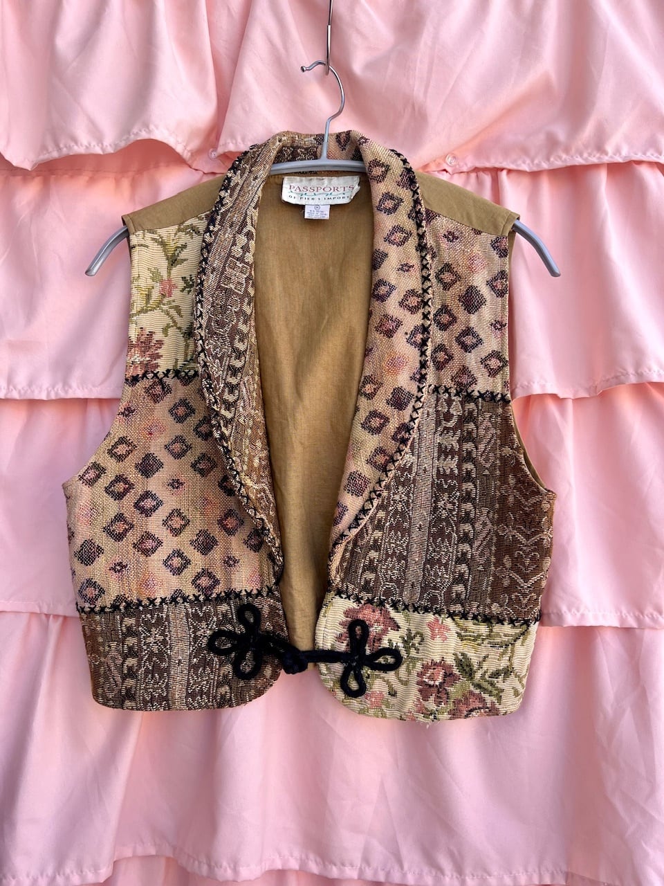 ゴブラン柄が切り替えしで作られている襟付きベスト♡