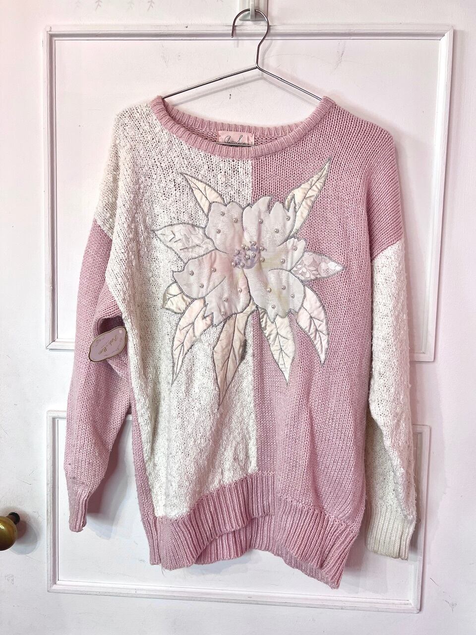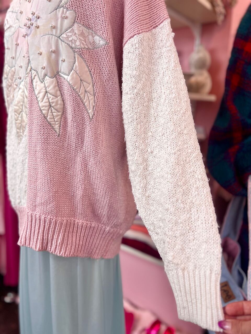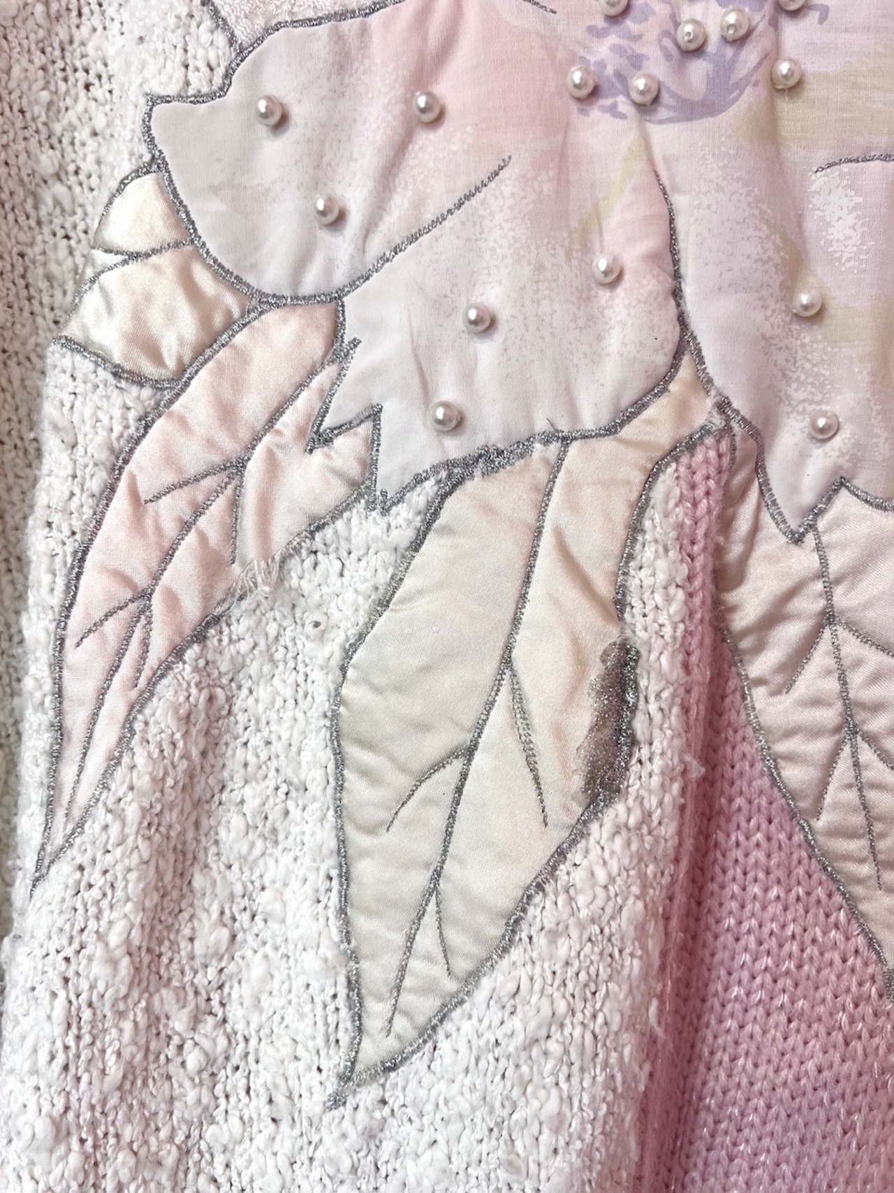 真ん中にお花のデザインが施されているデザインが素敵なニットトップス♡