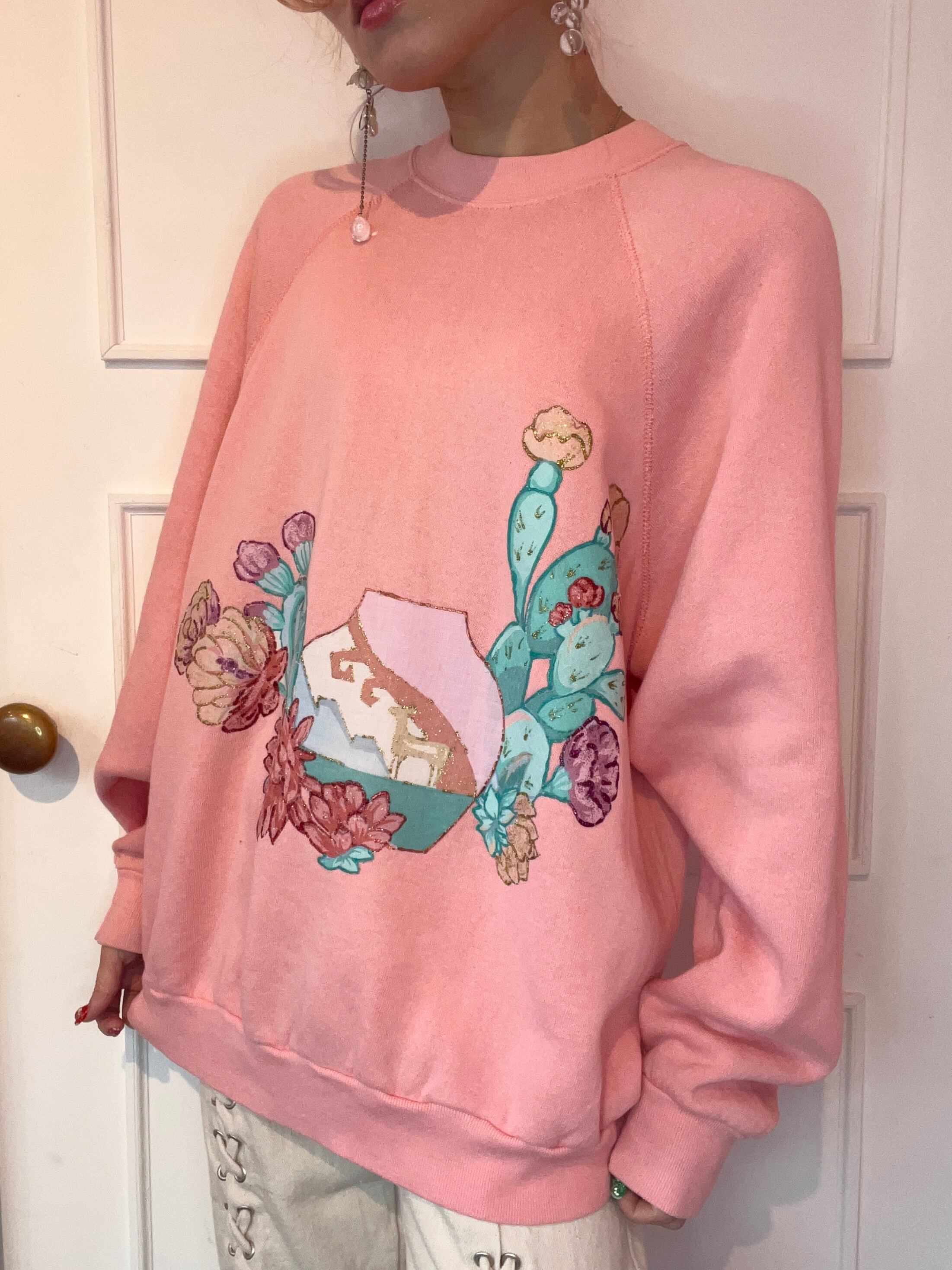サボテン柄が可愛いサーモンピンクスウェット♡