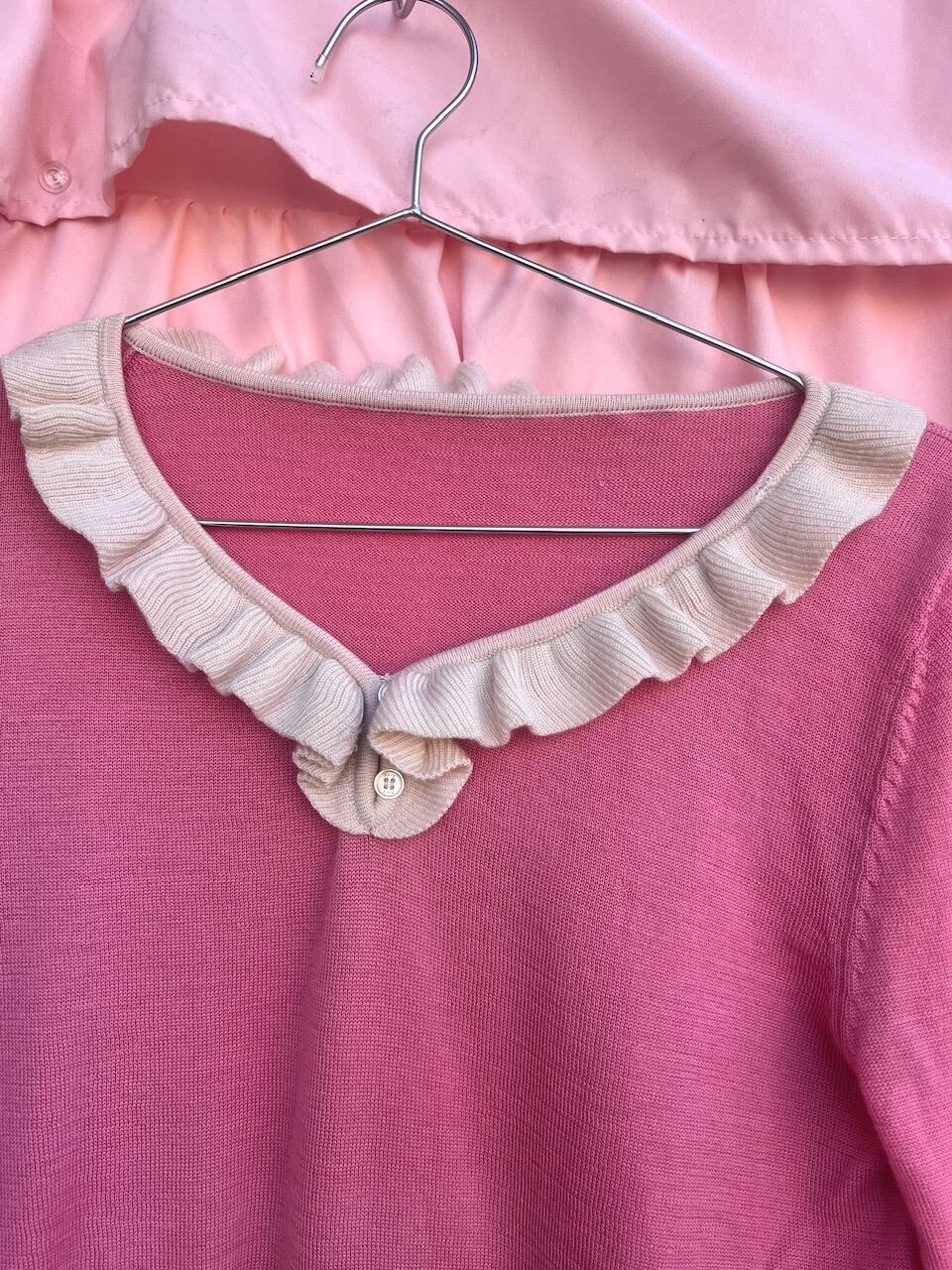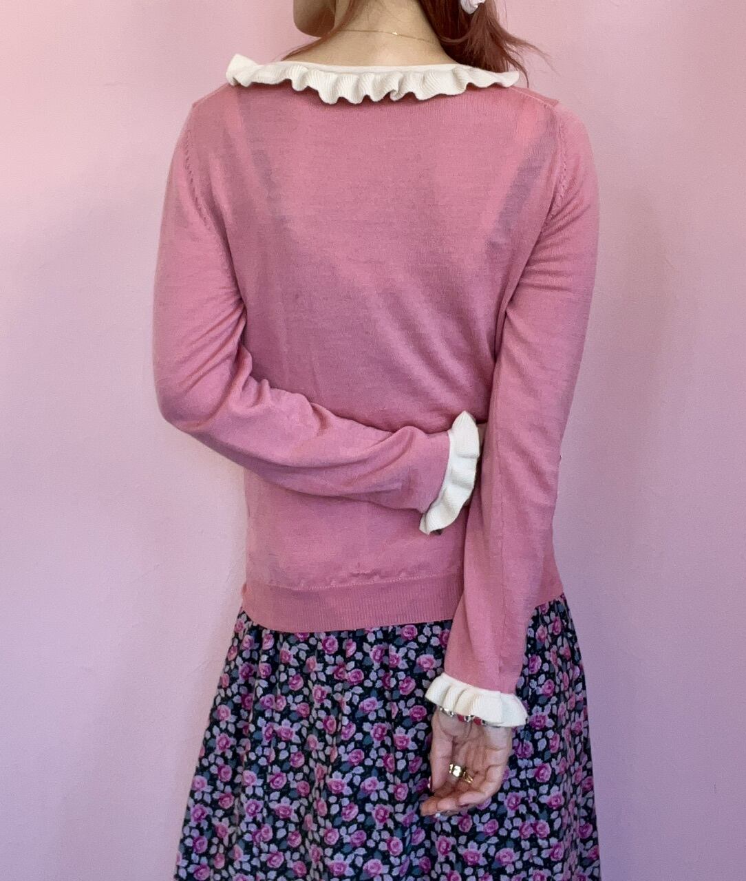 スウェットやニットの中に合わせてフリルを出すスタイルもおすすめです。