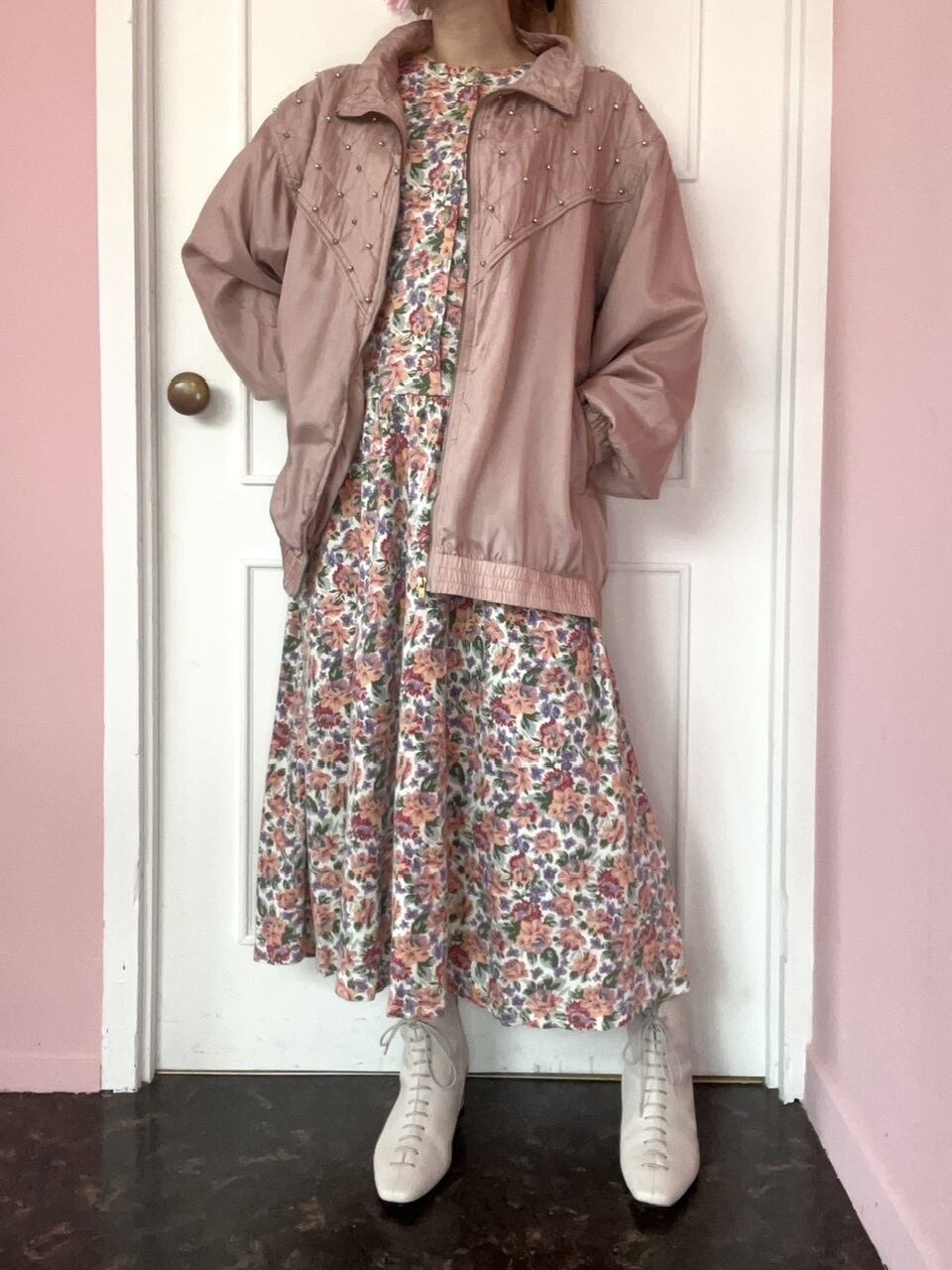 胸元のスタッズが可愛いらしいシルクジャケット♡