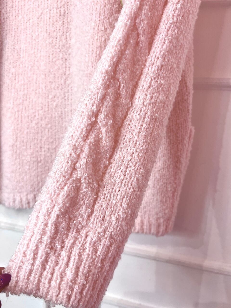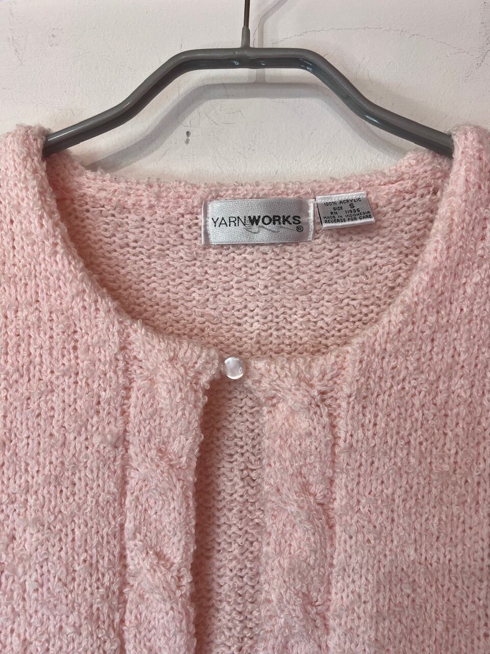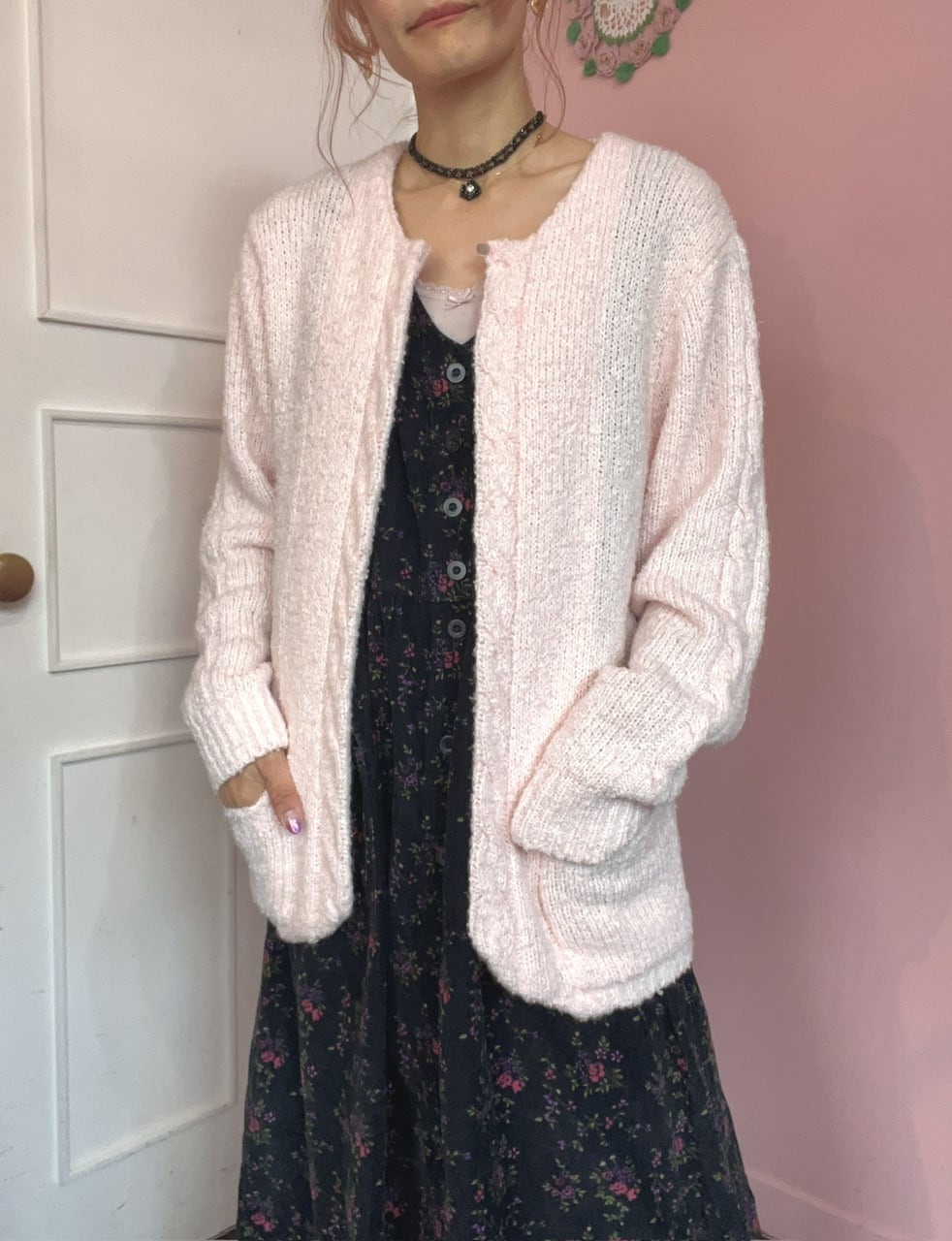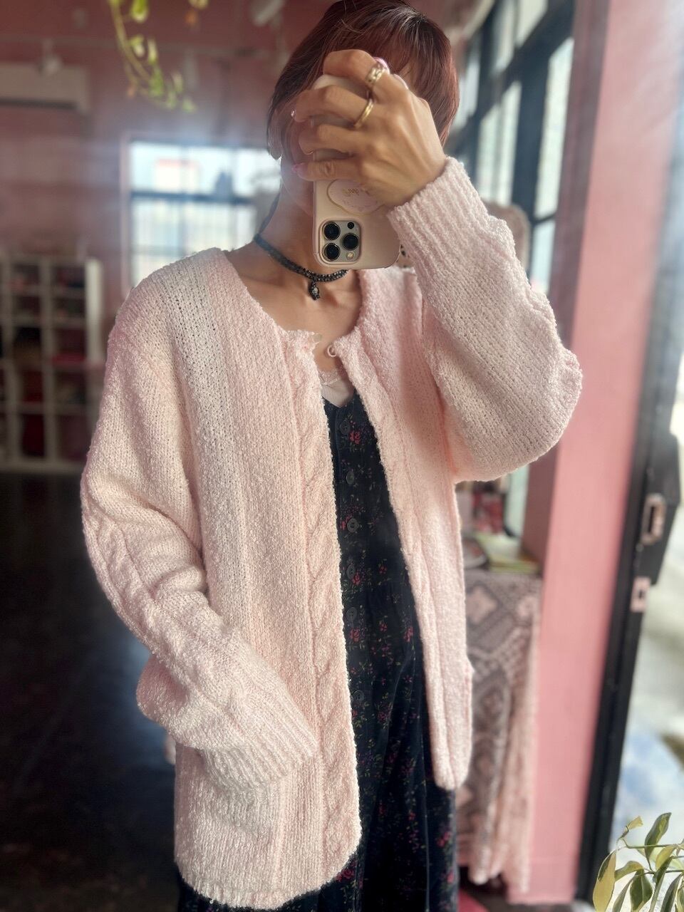 ベビーピンクの薄い色合いが優しい印象のニットカーディガン♡