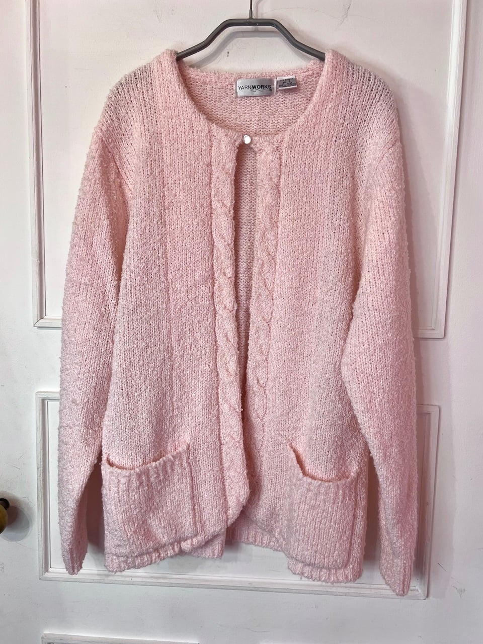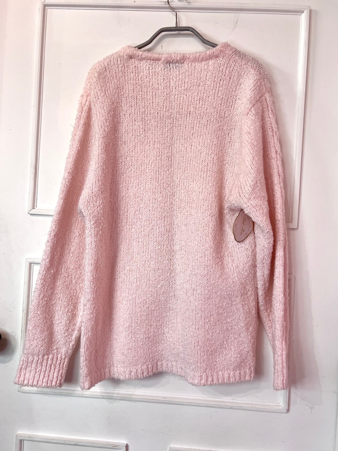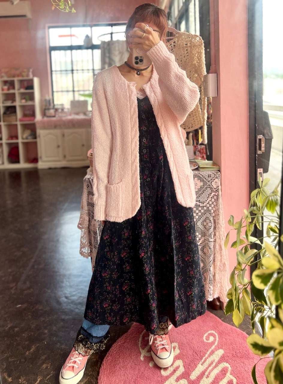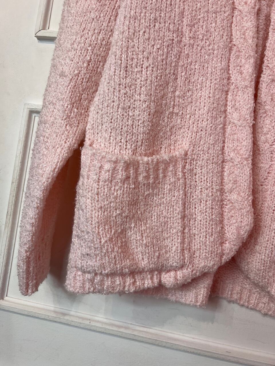 ベビーピンクの薄い色合いが優しい印象のニットカーディガン♡