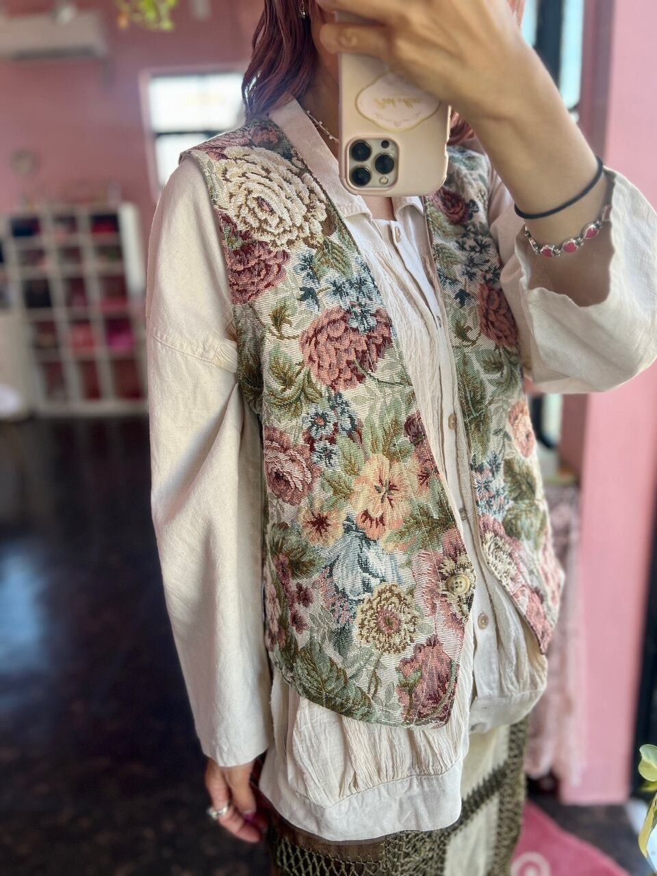 一枚で華やかに彩ってくれるゴブラン花柄ベスト。