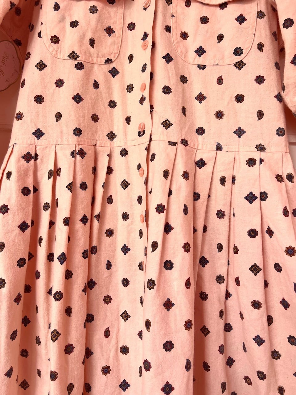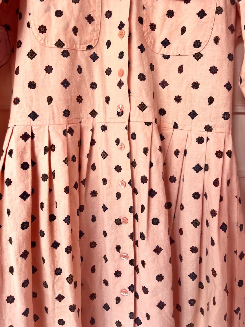 薄めのサーモンピンクカラーにペイズリー柄が施されたワンピース♡