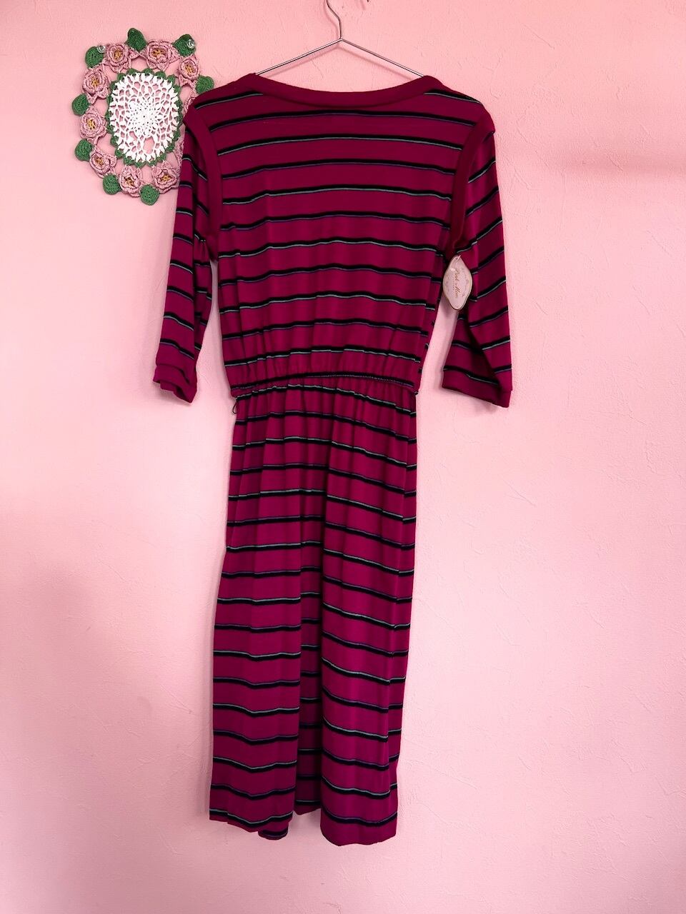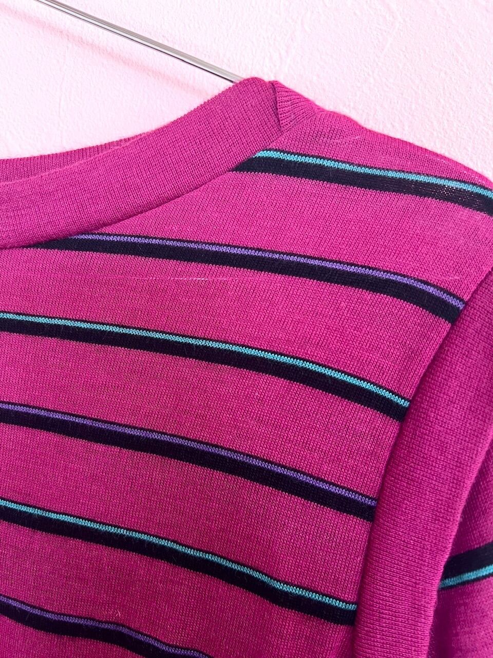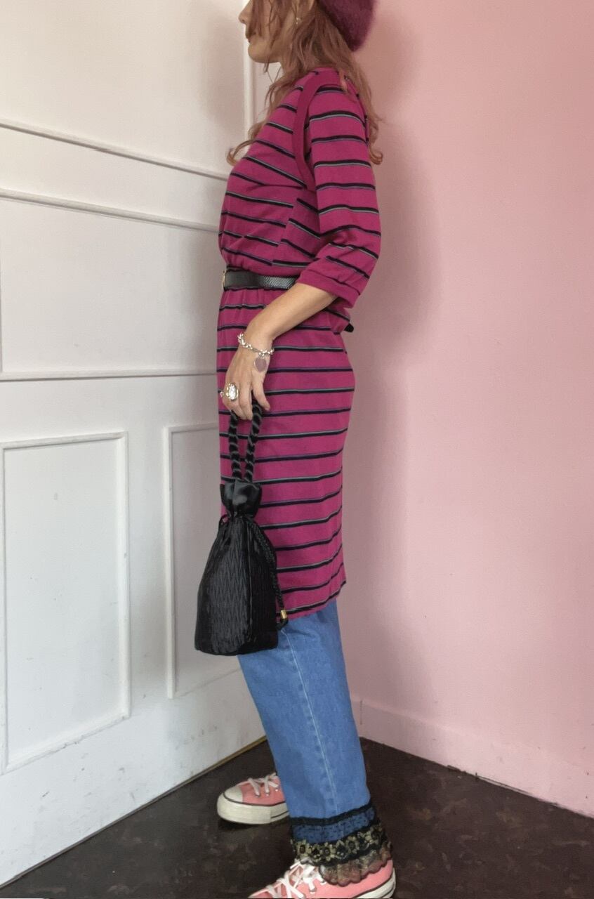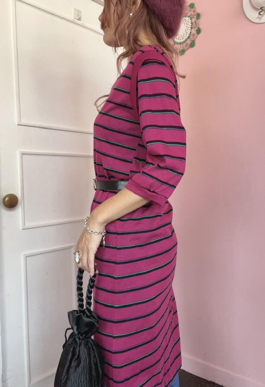 80sらしいローズピンクのボーダーワンピース。