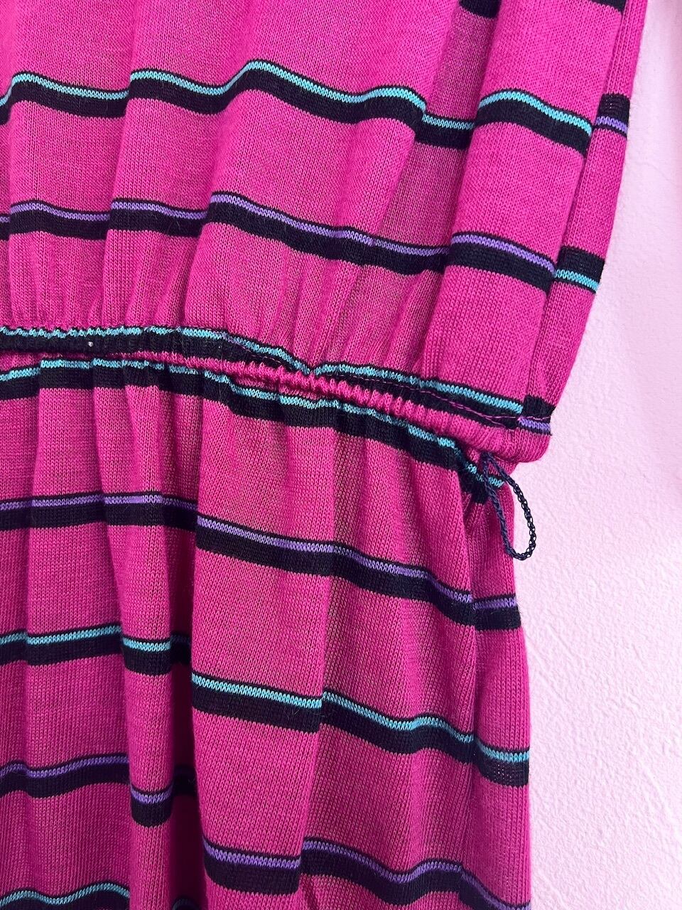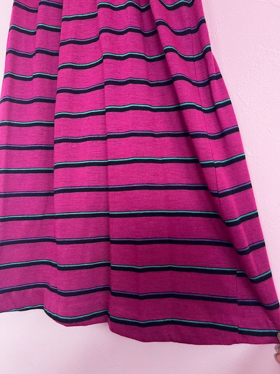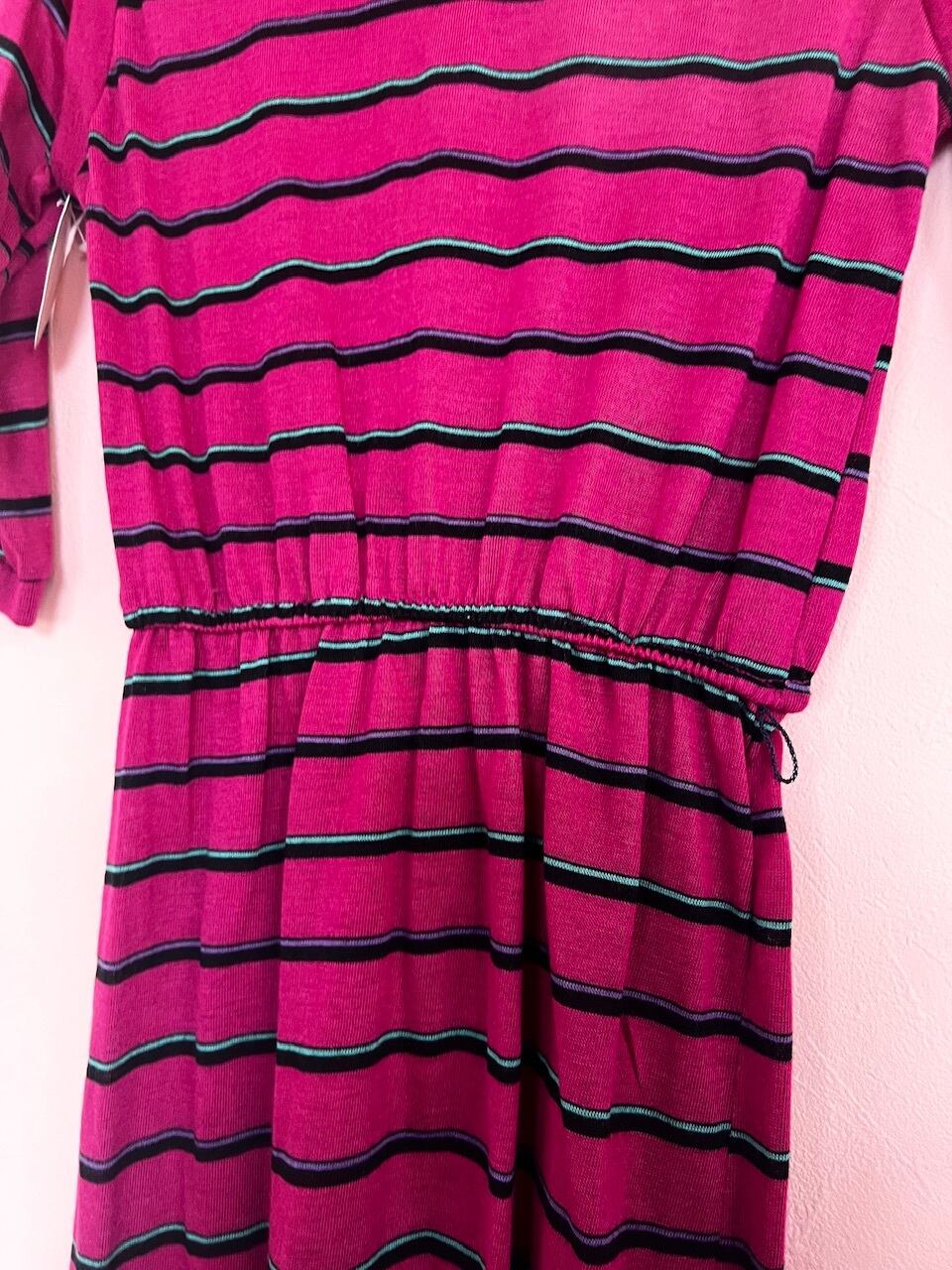 80sらしいローズピンクのボーダーワンピース。