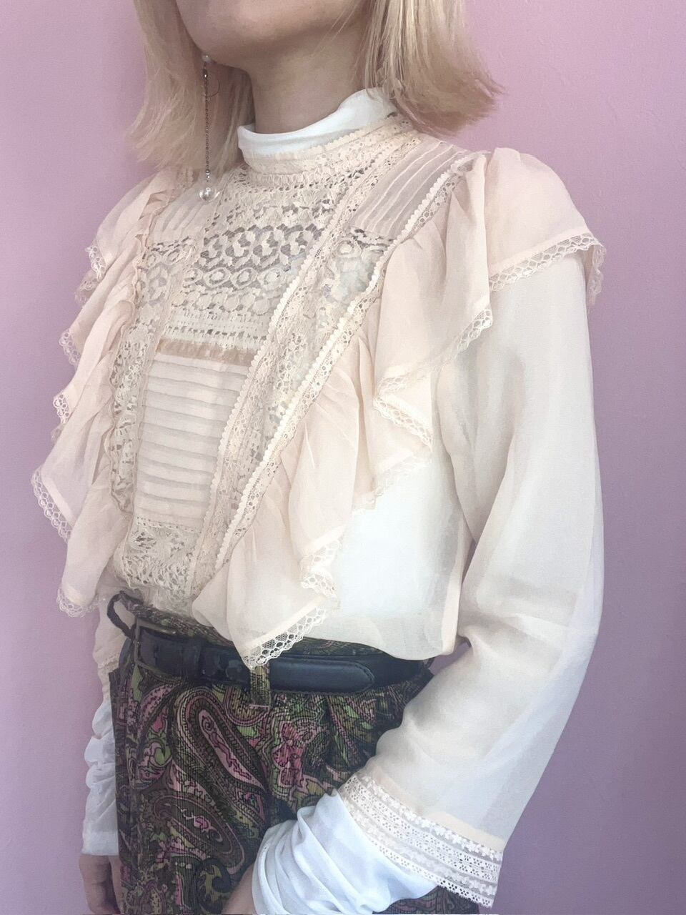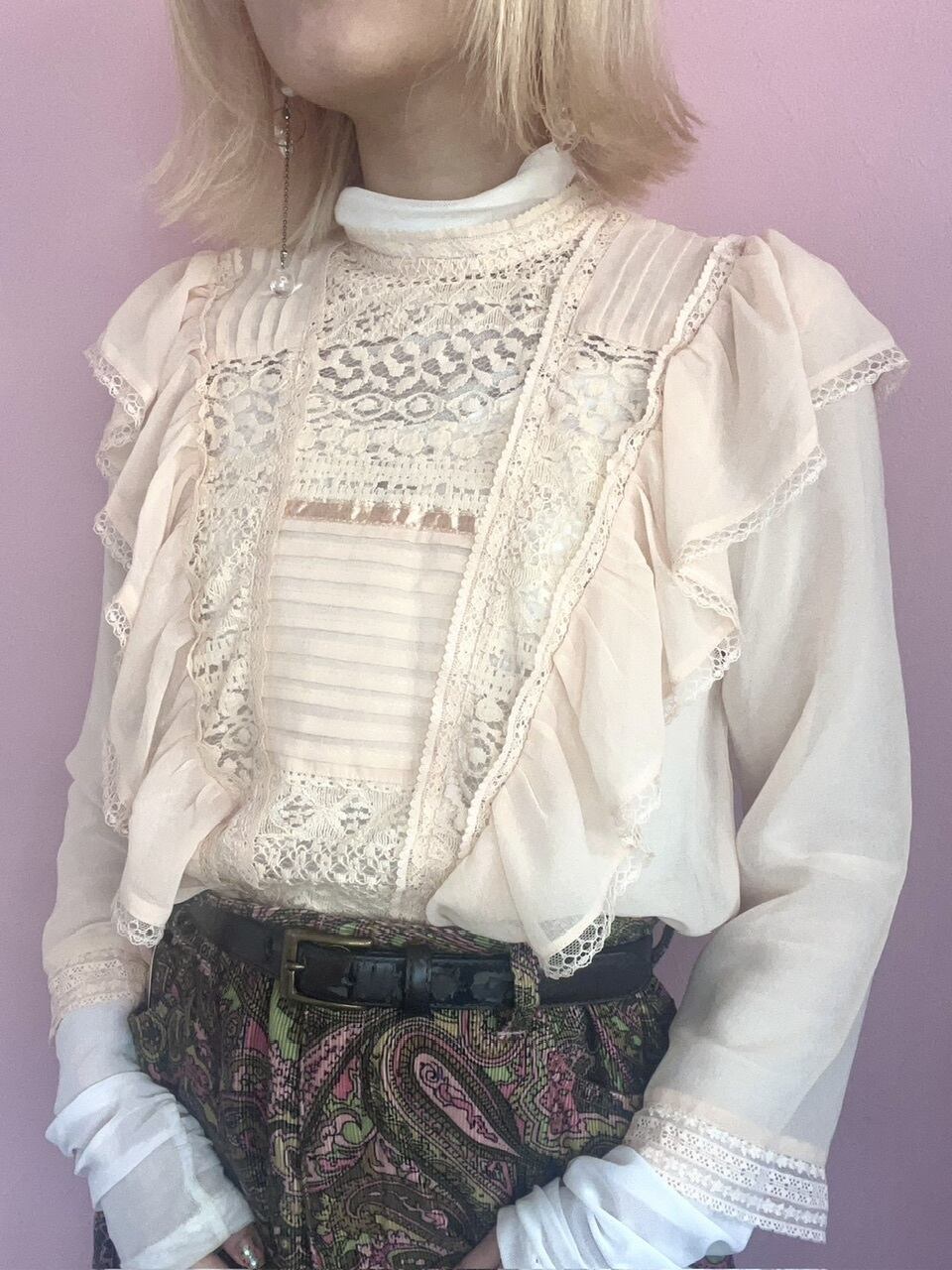 シースルーのフリルブラウス。フロントがレースのデザインで透け感があります♡