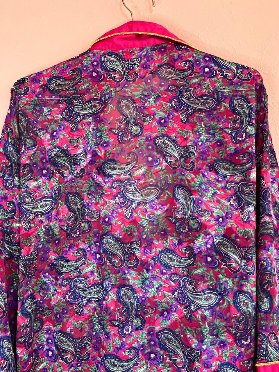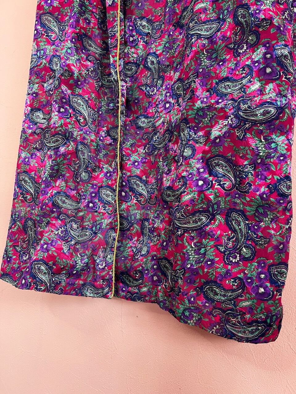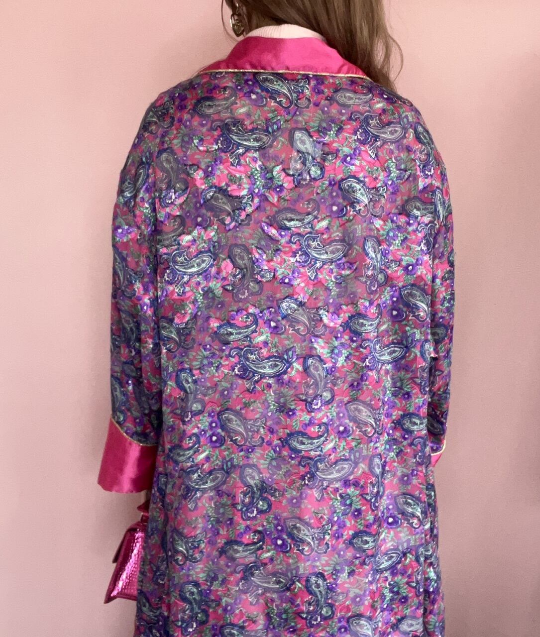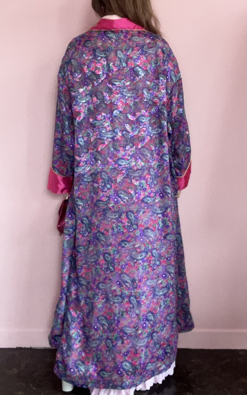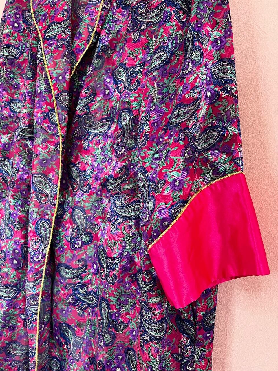 袖と襟の部分は光沢感ある生地で、ゴールドのパイピングが施されていて高級感あるガウンです。