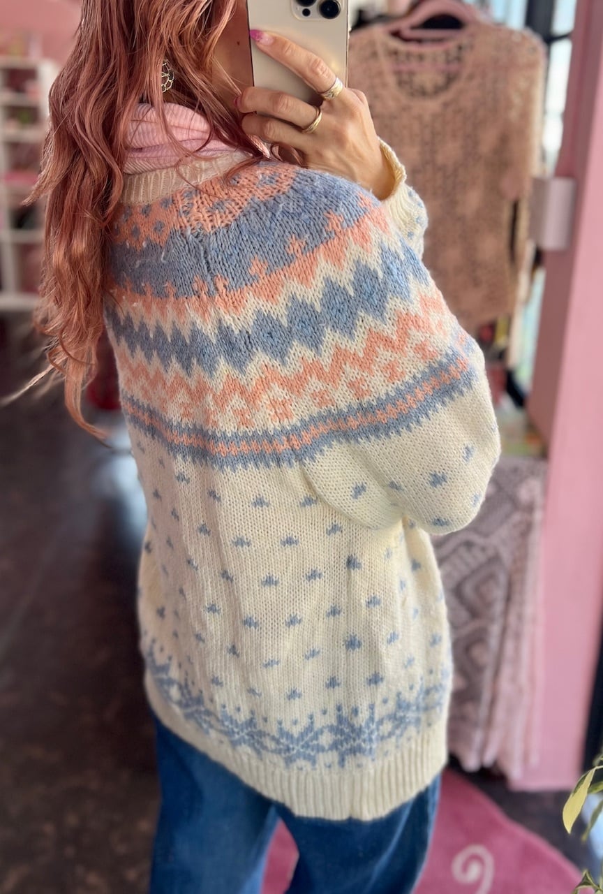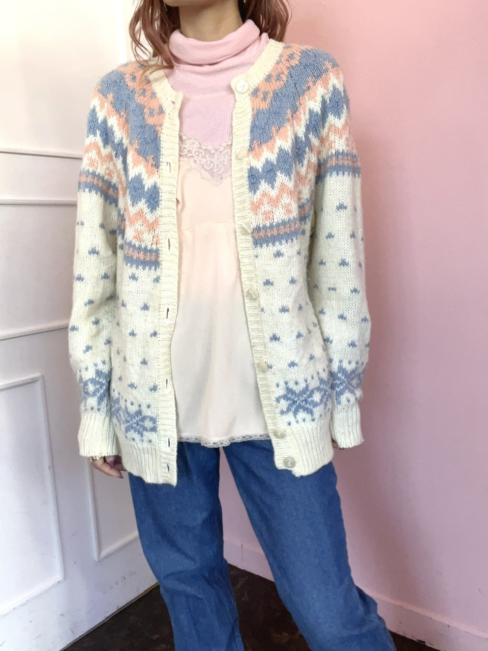 アイボリーカラーに、ブルーとピンクの柄が施されています。