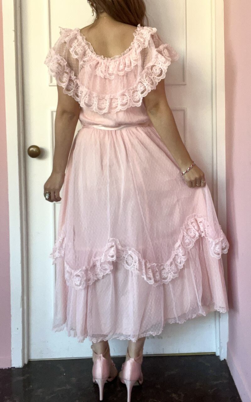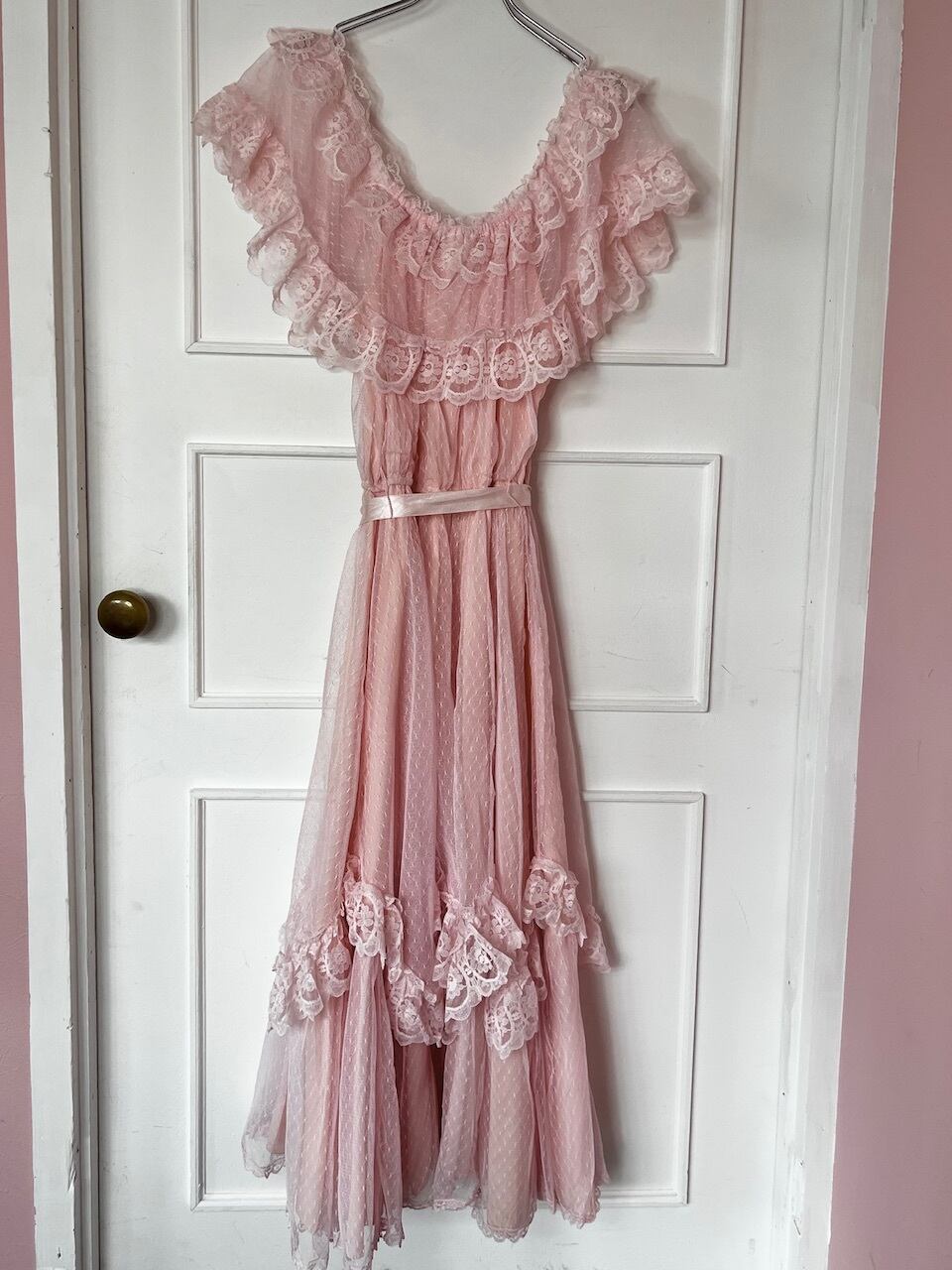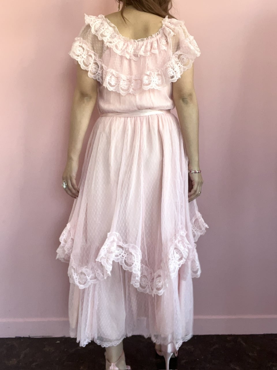ウェーブされたレースや胸元のレースが可愛いらしく、1着は持っていたいヴィンテージドレスです♡