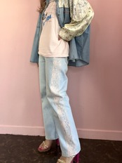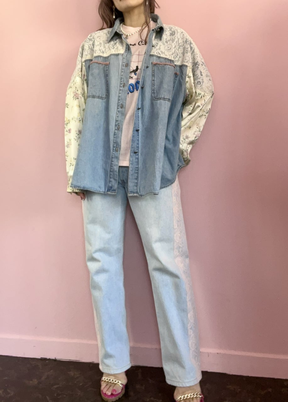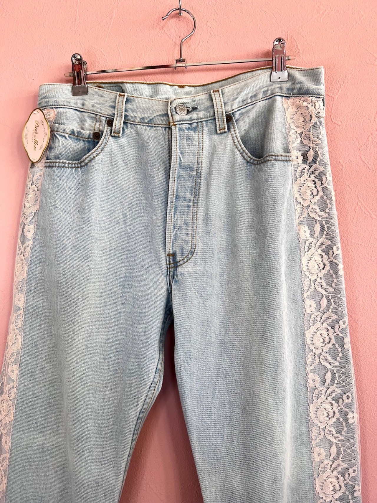 Levi’s 501パンツにヴィンテージレースでラインを施したプチリメイクになります♡