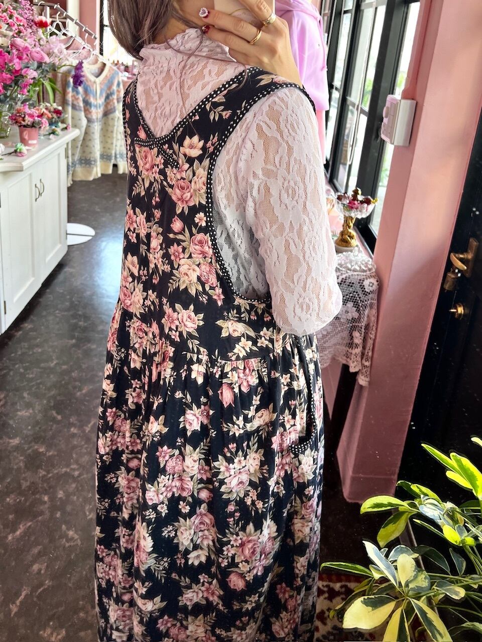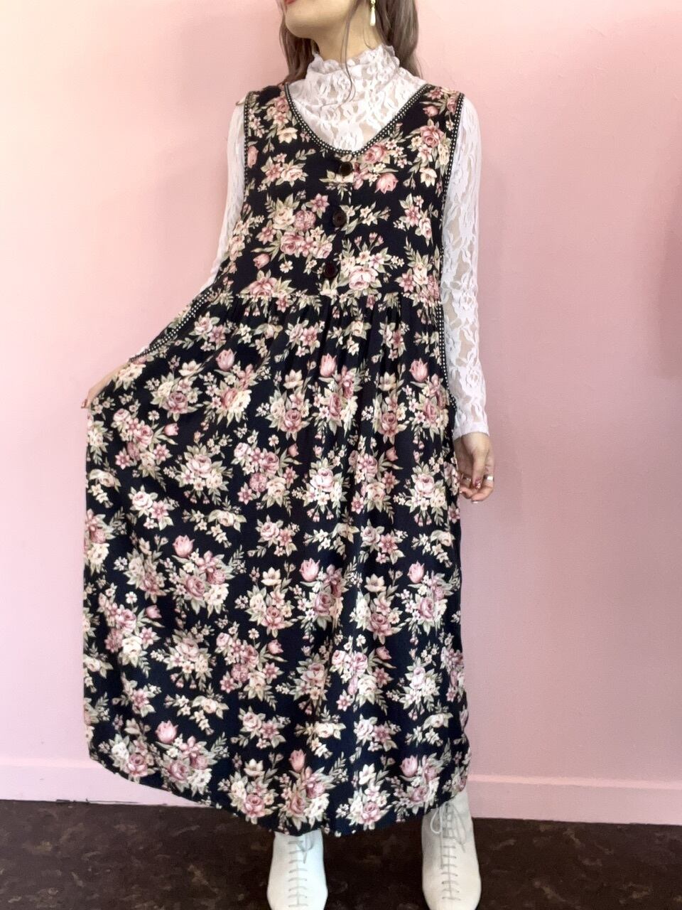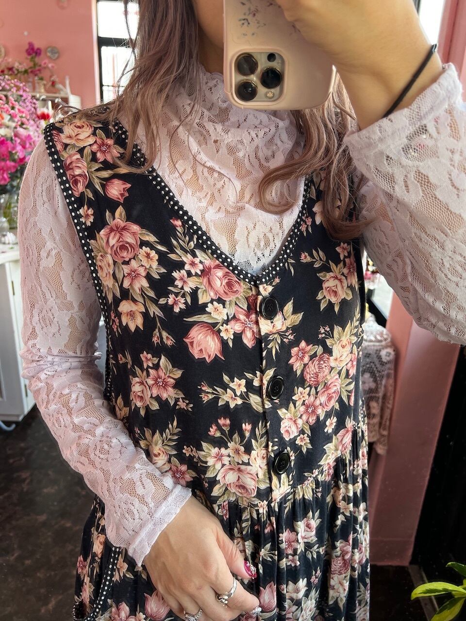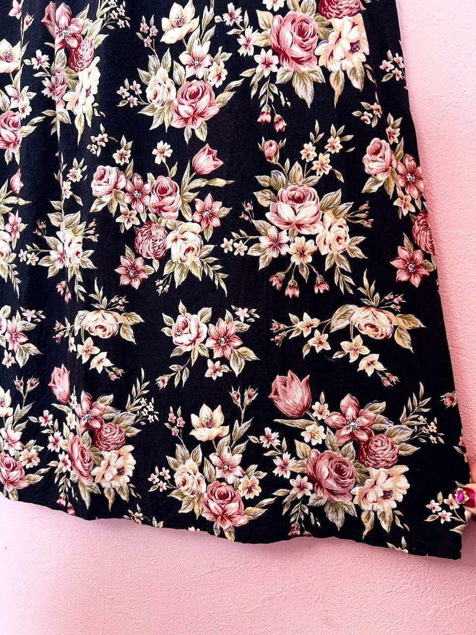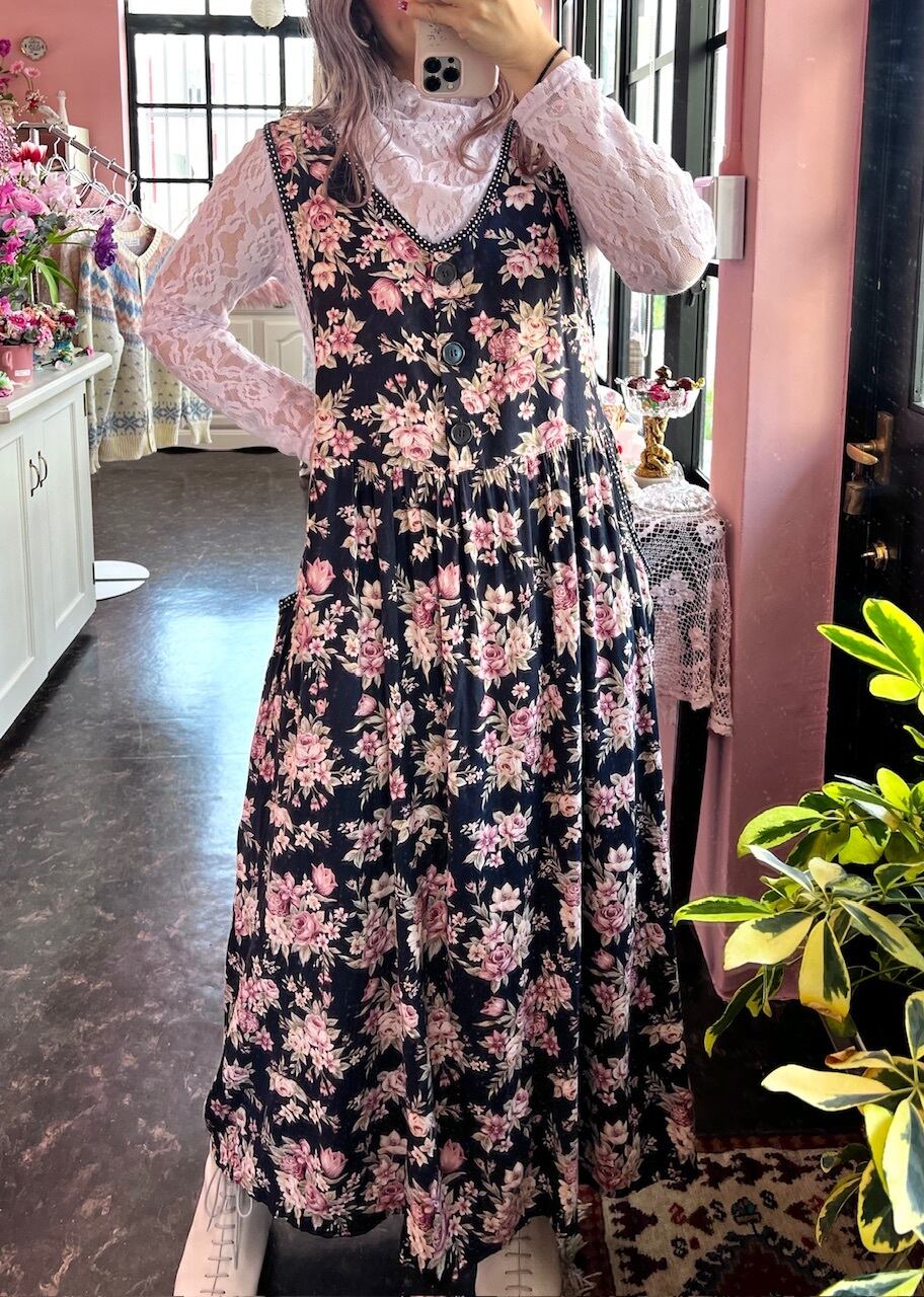 縁がドットの切り替えし生地になっている花柄ワンピース♡