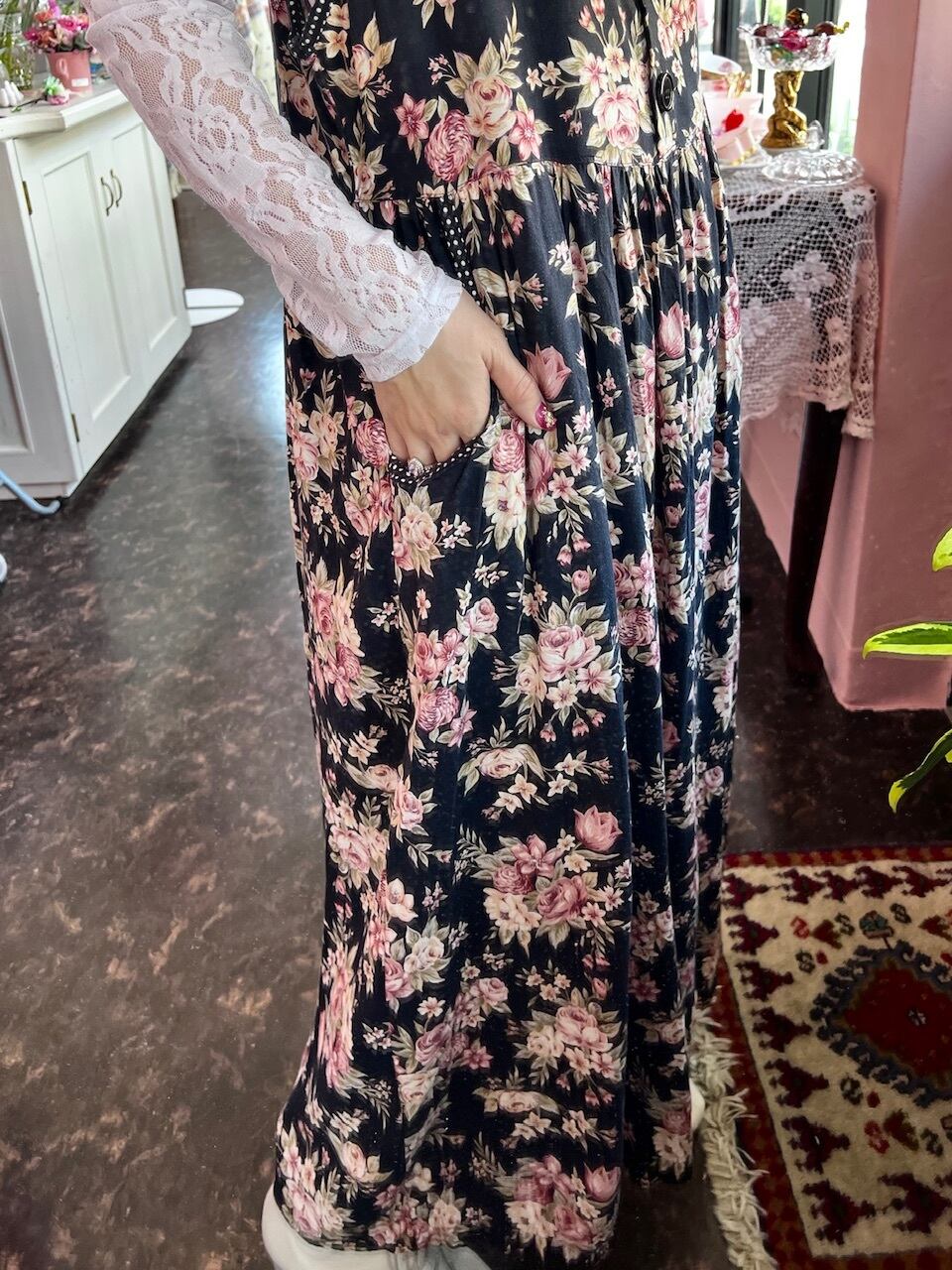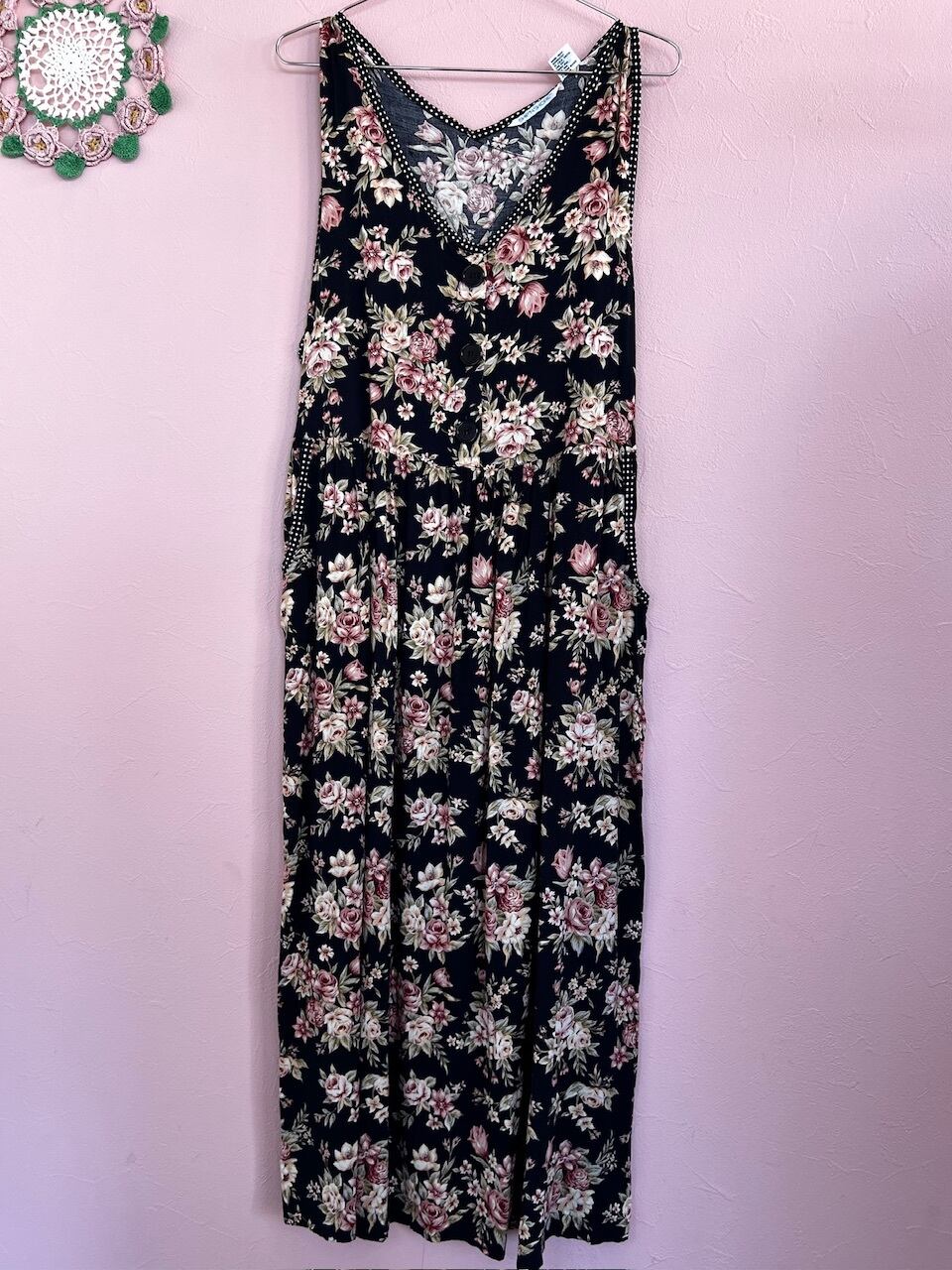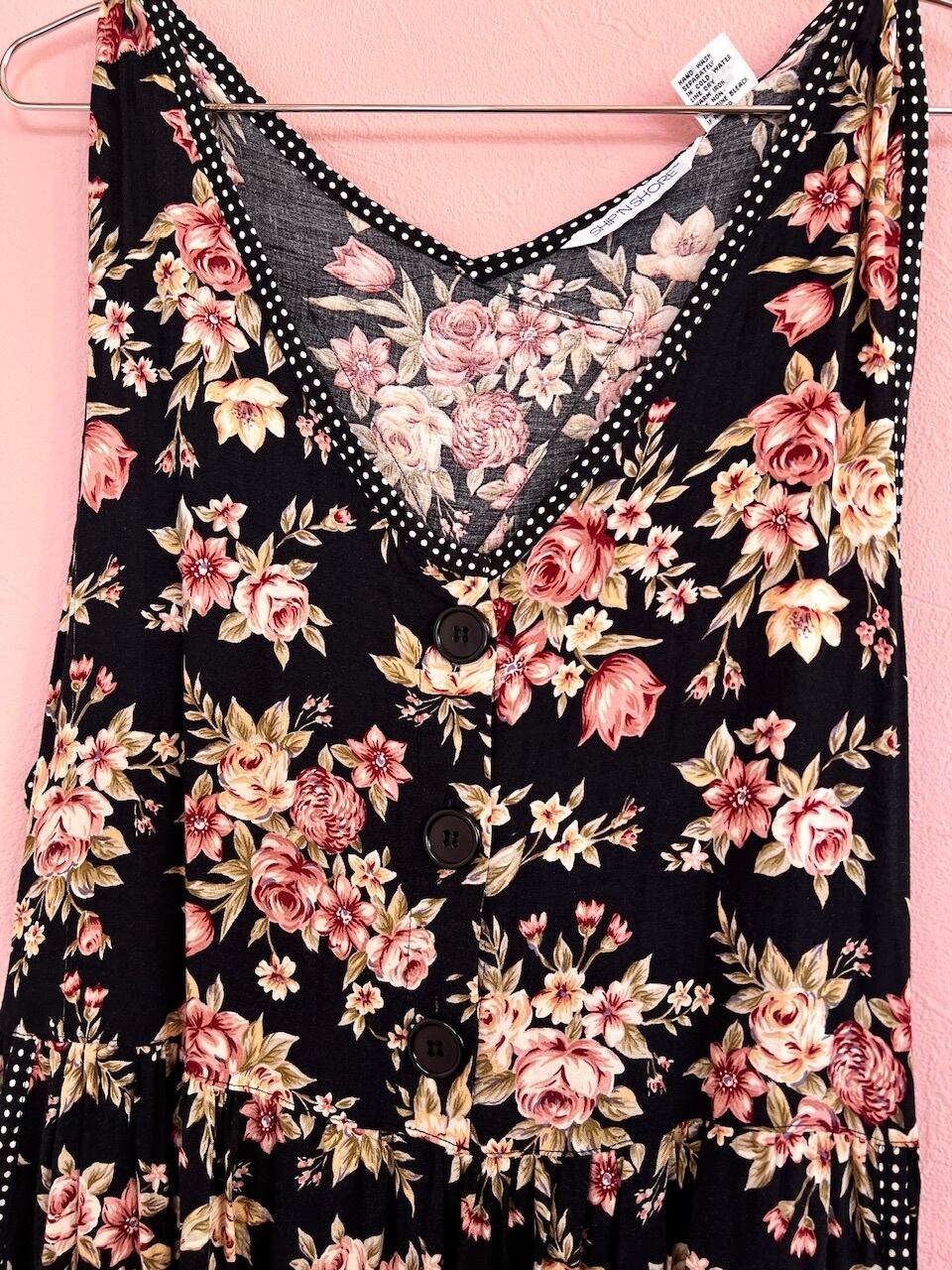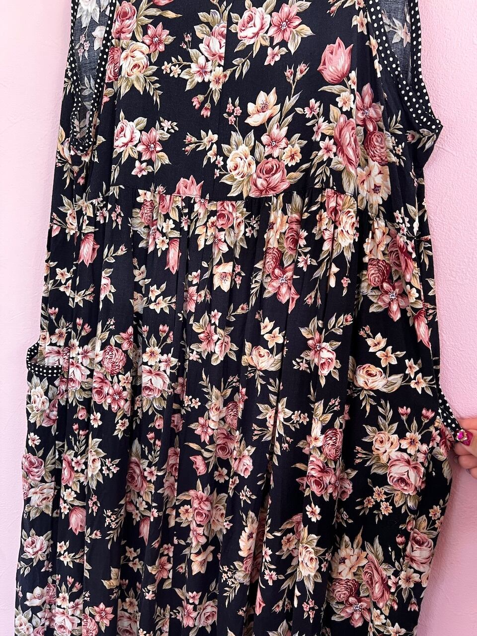 縁がドットの切り替えし生地になっている花柄ワンピース♡