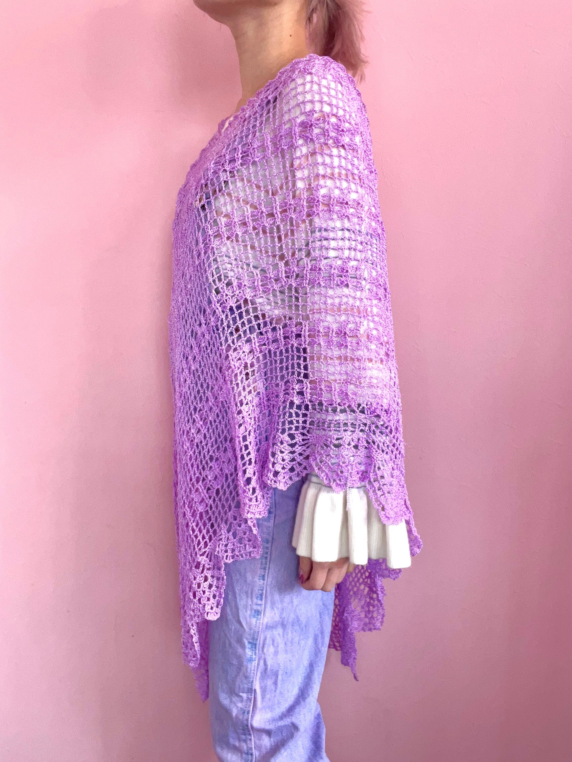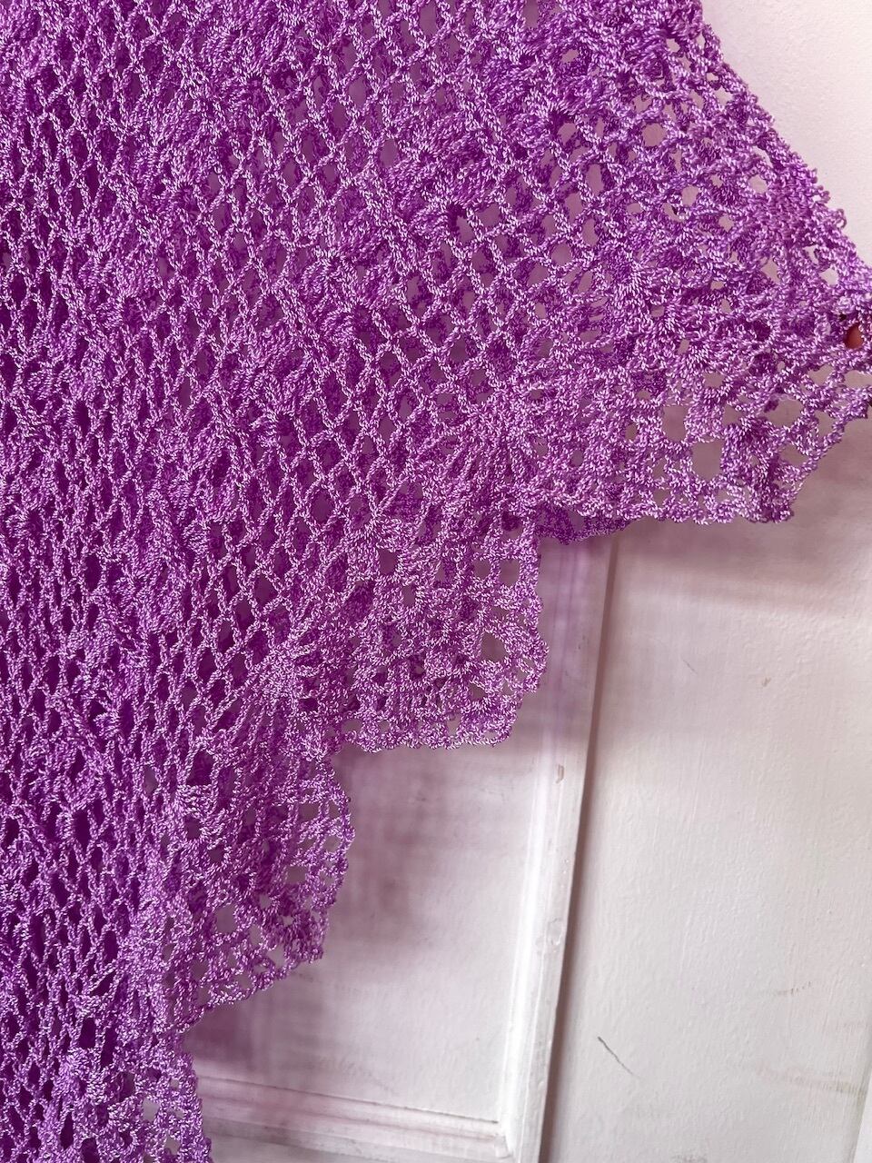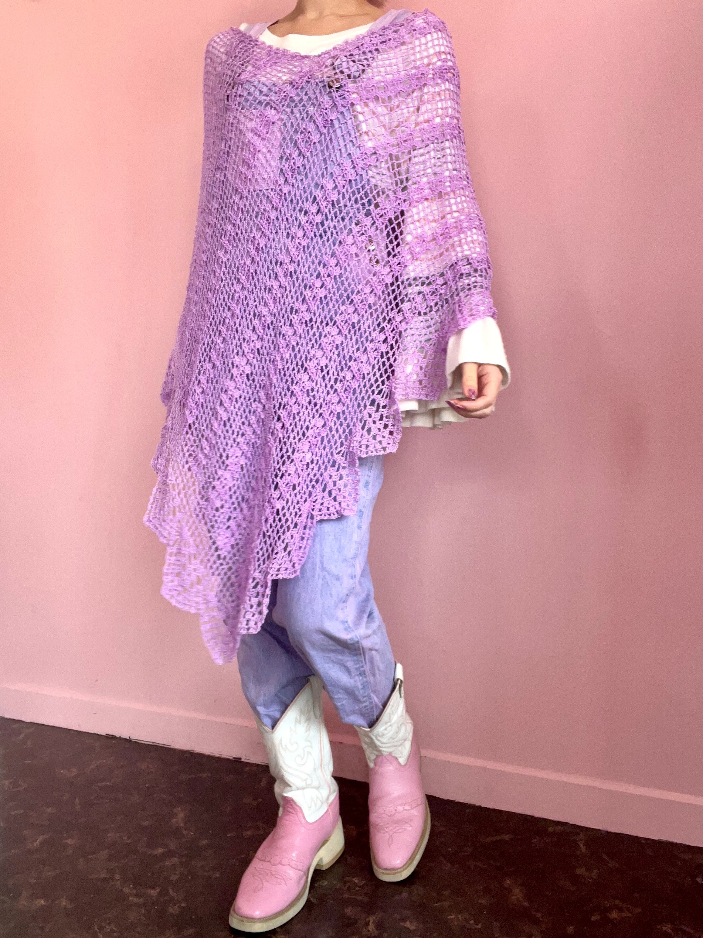 パープルカラーのクロシェット編みが可愛いポンチョ♡
