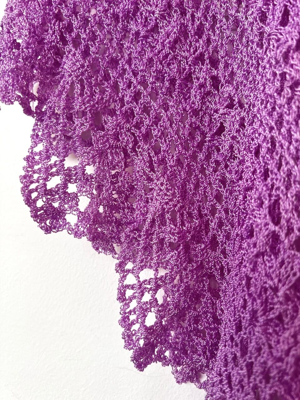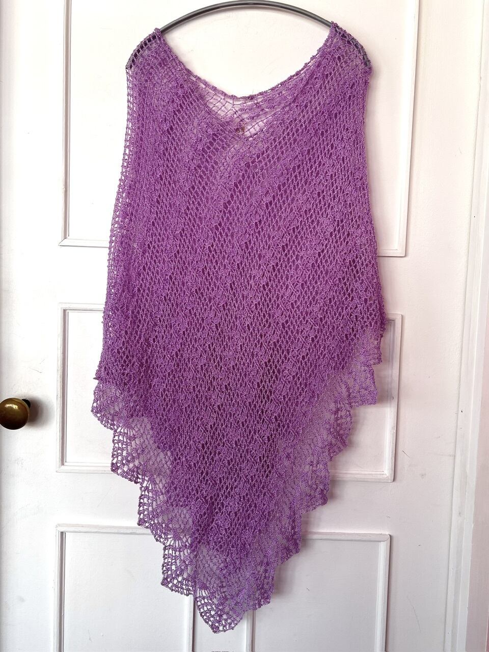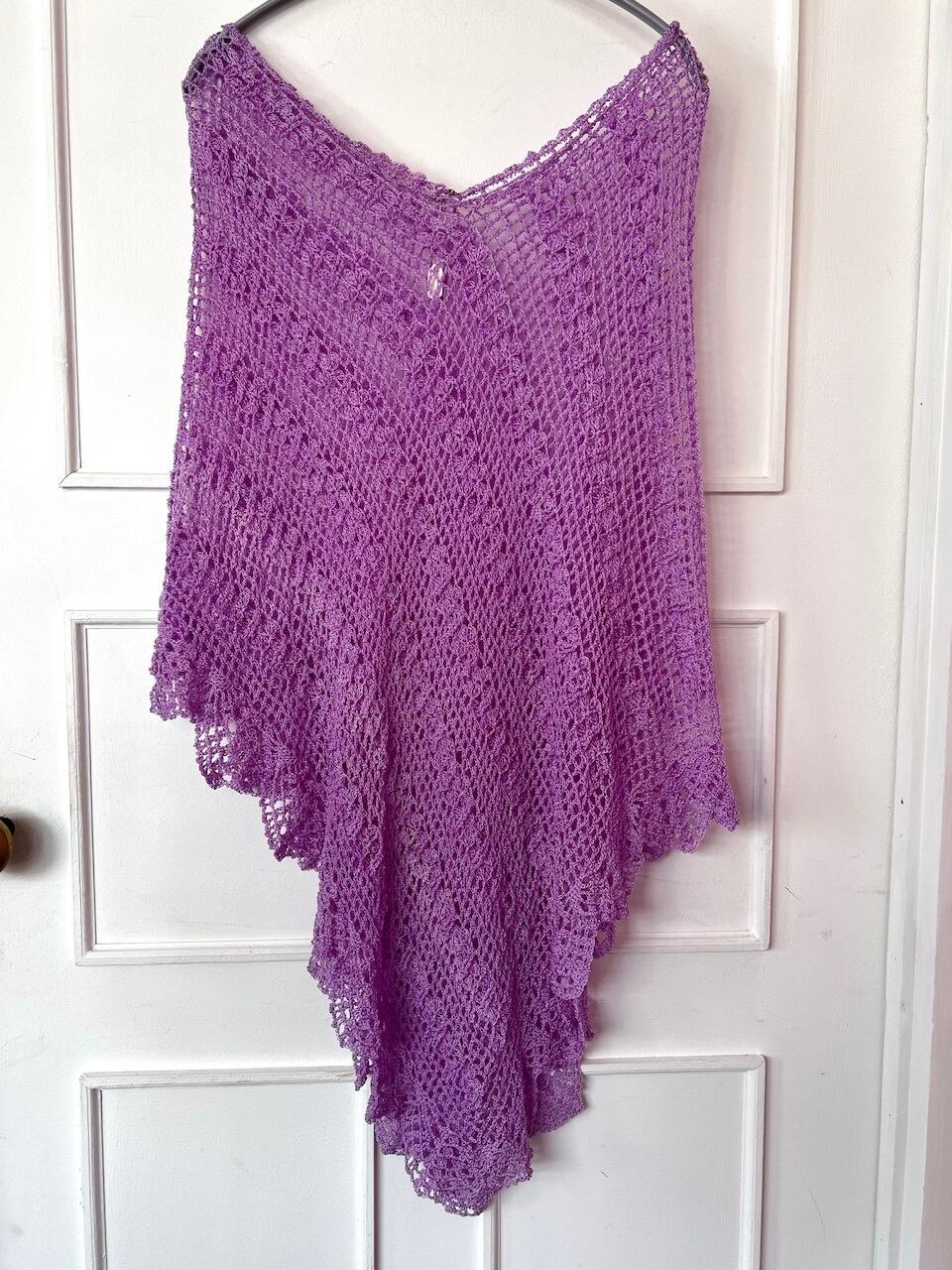 パープルカラーのクロシェット編みが可愛いポンチョ♡